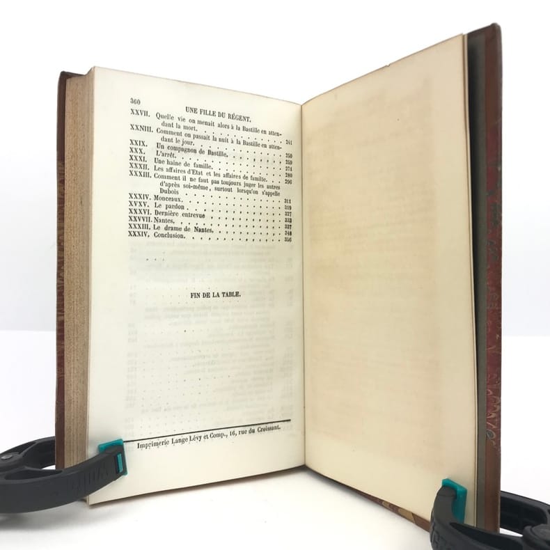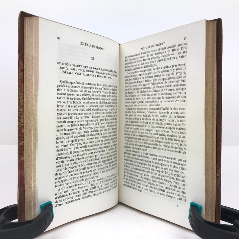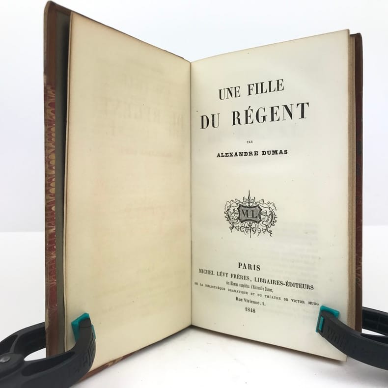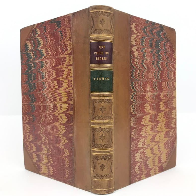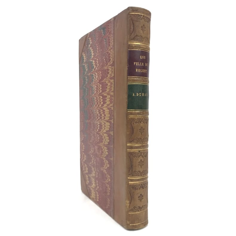 1 volume in-12 (17 x 11 cm), demi veau fauve à coins (reliure de l’époque), dos à nerfs estampé à froid, pièces de titre et de tomaison en maroquin grenat et vert, double filet à froid en bordure, tranches mouchetées, [2]-360 pages (complet). Infimes frottements à la reliure, rares rousseurs. État très correct. Nouvelle édition, parue trois ans après l’originale. Une fille du régent fait partie des plus grandes œuvres de l’auteur, toutes rédigées en collaboration avec Auguste Maquet (1813-1888) entre 1844 et 1850 : Les Trois Mousquetaires, Le Comte de Monte-Cristo, La Reine Margot, Vingt Ans après, Le Chevalier de Maison-Rouge, La Dame de Monsoreau, Joseph Balsamo, Les Quarante-cinq, Le Vicomte de Bragelonne et enfin Le Collier de la reine. Agréable exemplaire.
