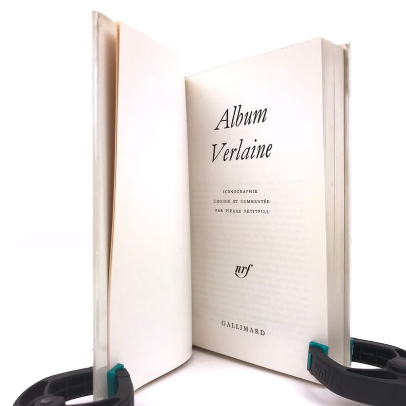 1 volume (17 x 10,5 cm), avec rhodoïd, reliure en cuir et dos avec lettrage en or, 318-[2] pages (complet). Seul ouvrage de la collection à ne pas posséder d’étui, et uniquement un rhodoïd. Très bon état. Album publié par les éditions Gallimard, au sein de la collection Bibliothèque de la Pléiade. Il fut réalisé par Pierre Petitfils (1908-2001), critique spécialiste de Rimbaud et de Verlaine. Ce volume explore ici précisément la carrière littéraire de Paul Verlaine (1844-1896), à travers une très importante et riche iconographie : manuscrits reproduits, dessins, ou encore photographie. Agréable exemplaire.