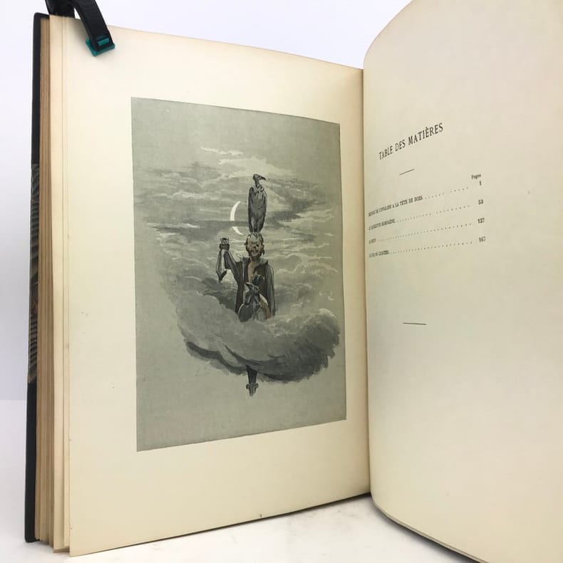 Joli livre de contes extravagants et un peu macabres, illustré avec talent par le peintre Georges CLAIRIN, de nombreuse compositions dans et hors-texte certaines coloriées au pochoir. (Carteret, T. V, p.II68).