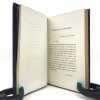 Sous étui bordé et sous chemise en demi-maroquin. Reliure plein maroquin vert. Dos à nerfs orné de caissons dorés et mosaïqués. Encadrement d'un double filet doré et d'un listel de maroquin citron aux contours irréguliers dans les angles. Fleurons dorés aux angles. Tranches dorées sur témoins. Doublure bord à bord de maroquin vert foncé, dentelle dorée intérieure, gardes de soie brochée, doubles gardes de papier marbré. Couverture et dos conservés. Reliure signée MERCIER sr. de Cuzin.