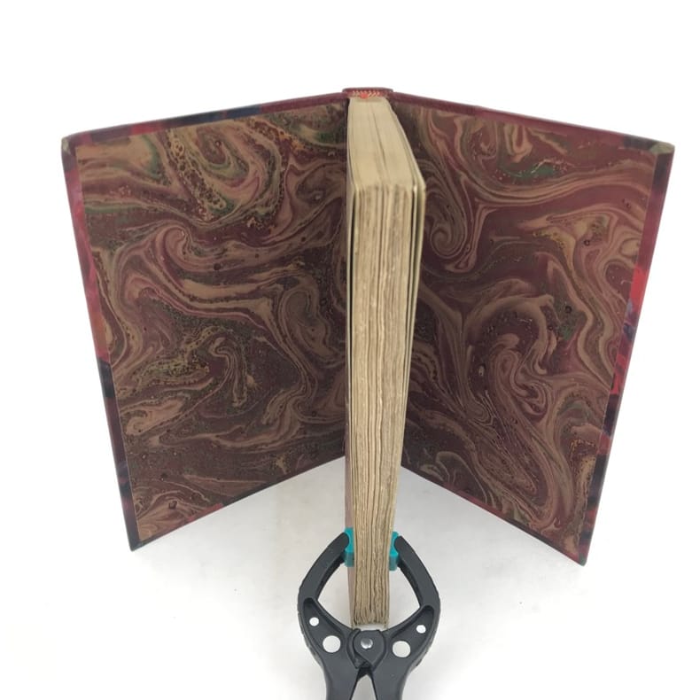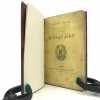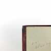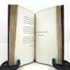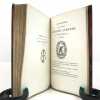 Sous étui bordé et sous chemise à petits recouvrements. Reliure maroquin bronze janséniste. Dos à nerfs avec date dorée en queue. Filet sur les coupes, doublure et gardes de soie brodée verte et blanche bordées d'un listel mosaïqué de maroquin vert. Tranches dorées. Couverture conservée. Reliure signée DEVAUCHELLE. Habile restauration de papier sur la page 103.