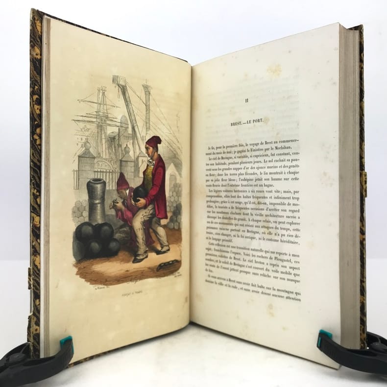 Gustave Havard, Dutertre, Michel Lévy frères, 1845. Édition originale, 2e partie. In-8, reliure amateur, demi-cuir rouge, dos long joliment orné, 234pp. (paginé de 242-476) agrémentées de figures n&b. Rares traces de mouillures. Intérieur agréable. Chasses et coins frottées. Dos et plats convenables. Ouvrage esthétiquement fatigué mais tout à fait sain.