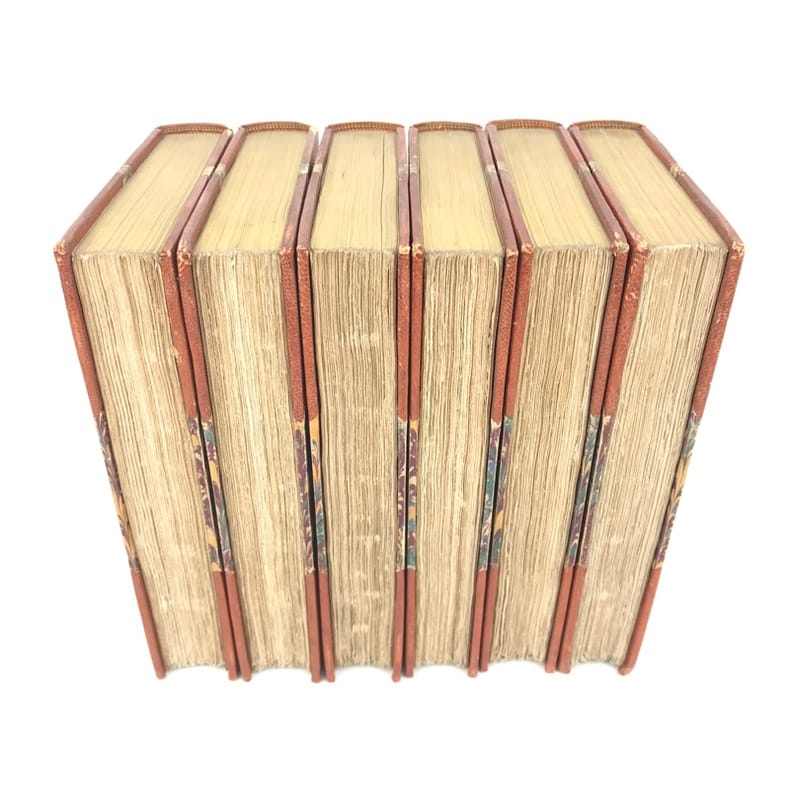 Jouaust / Librairie des Bibliophiles, 1884, 6 vol. in-12 rel. 1/2 chag. marron (11,5 x 18), XXI-265 p.-298 p.-280 p.-315 p.-307 p.-295 p., tirage sur papier vergé, "Petite Bibliothèque Artistique", préface par E. Gebhart, dessins de J. Worms gravés à l'eau-forte par Ricardo de Los Rios, dos longs ornés, bandeaux, lettrines et culs-de-lampe, tranches de tête dorées, bel exemplaire complet en six volumes, bon état.