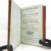 Paris, Demonville, 1802. In-8 en plein veau au dos à faux nerfs orné de fleurons dorés. 1 f. bl., Xxxvi, 668 pp, 1 f. bl. Manque de cuir aux coupes, aux coins, coiffes arasées, présence de frottements. Un coin fortement usé. Rousseurs. En état d'usage.