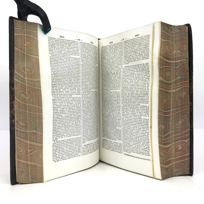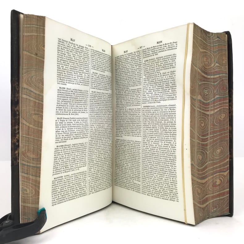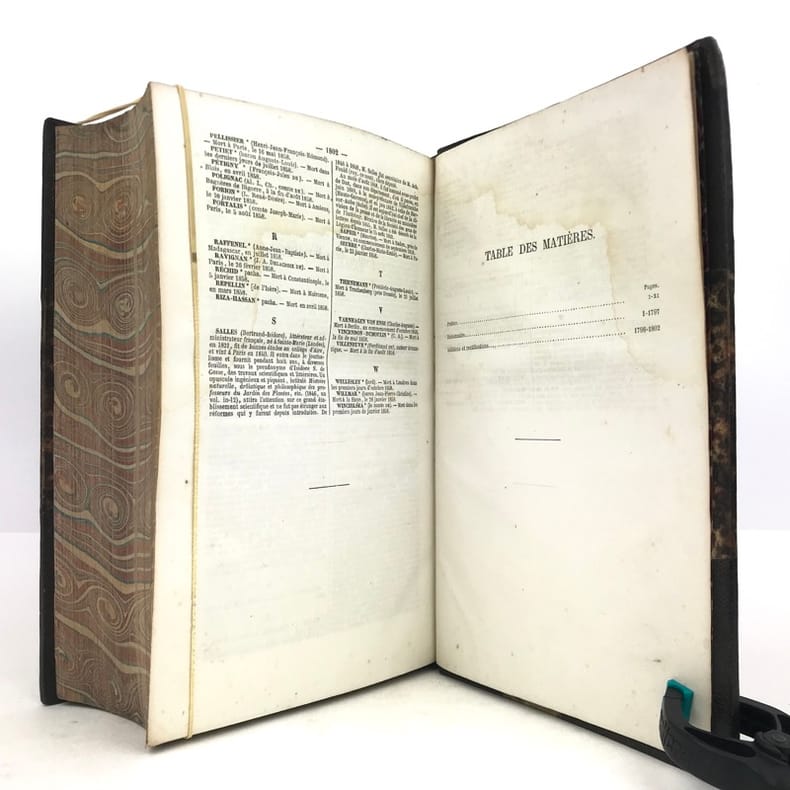 Paris Hachette 1865. Fort et grand in-8 X 1862pp 8pp catalogue toutes imprimées sur 2 colonnes. Demi chagrin vert, dos à nerfs orné de cadres de filets à froid et dorés, plats de percaline verte avec cadres de filets à froid, reliure de l'époque. Intéressante source biographique dans une reliure décorative.