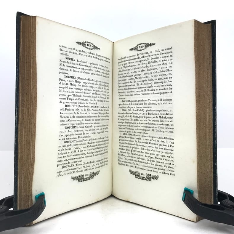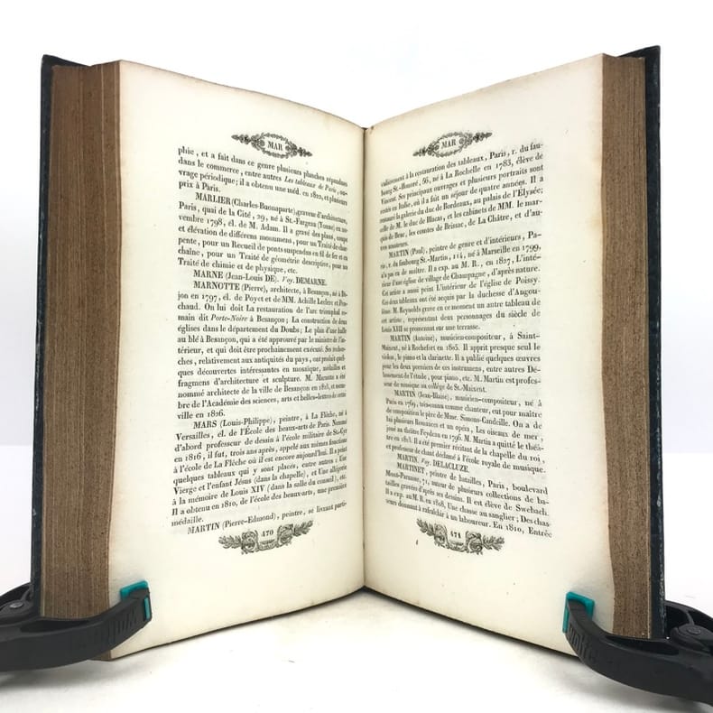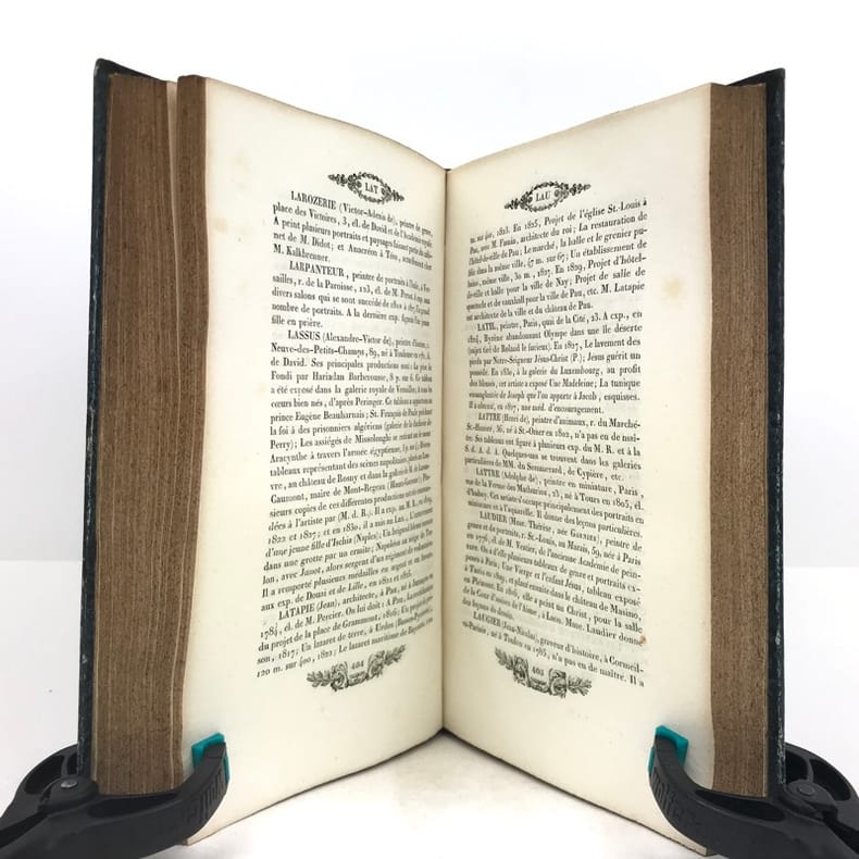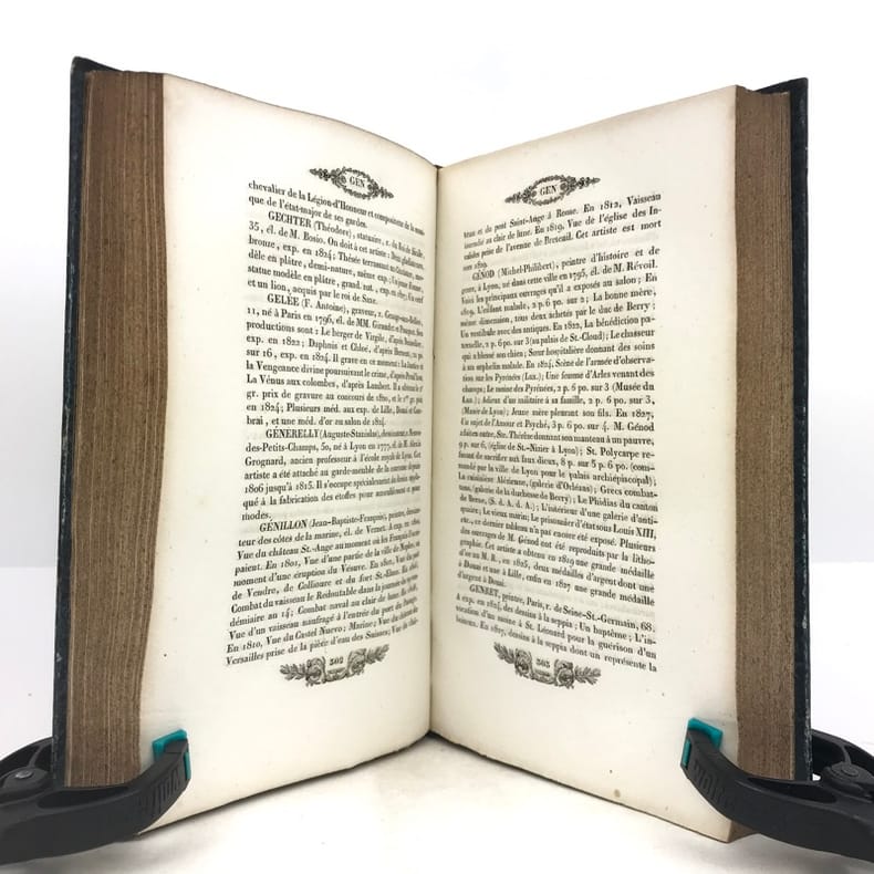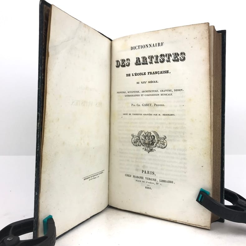 1 volume in-8 (21 cm x 12,5 cm), demi-basane verte, dos lisse à motifs dorés, ex-libris de Lucien Jannin contrecollé sur le contreplat. [8]-709-[1] pages (complet). Frottements à la reliure, rousseurs éparses. État très correct. ÉDITION ORIGINALE. Charles Gabet (1793-1861) est un peintre portraitiste et policier français, surtout connu pour la publication de son Dictionnaire des artistes de l'école française au XIXe siècle, qui s'imposa comme une référence bibliographique majeure sur les milieux artistiques de son temps. Agréable exemplaire.