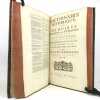 La Haye, Pierre de Hondt, 1758-1759. 2 tomes en 1 vol. in-folio, veau marbré, dos à nerfs orné de filets dorés, pièce de titre en maroquin rouge, pièce de tomaison en maroquin vert, encadrement d'un triple filet doré sur les plats, double filet doré sur les coupes, roulette dorée intérieure, tranches rouges. Reliure de l'époque, épidermures sur les plats, petits accrocs avec légers manques aux coiffes. Agréable exemplaire. 1 planche h.-t. gravée en taille-douce, 1 tableau généalogique h.-t. et 7 vignettes gravées en taille-douce dans le texte, (4) ff., 330 pp., (3) ff.; (2) ff., 328 pp., (14) ff.