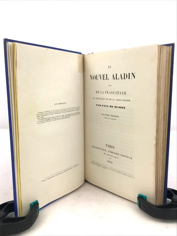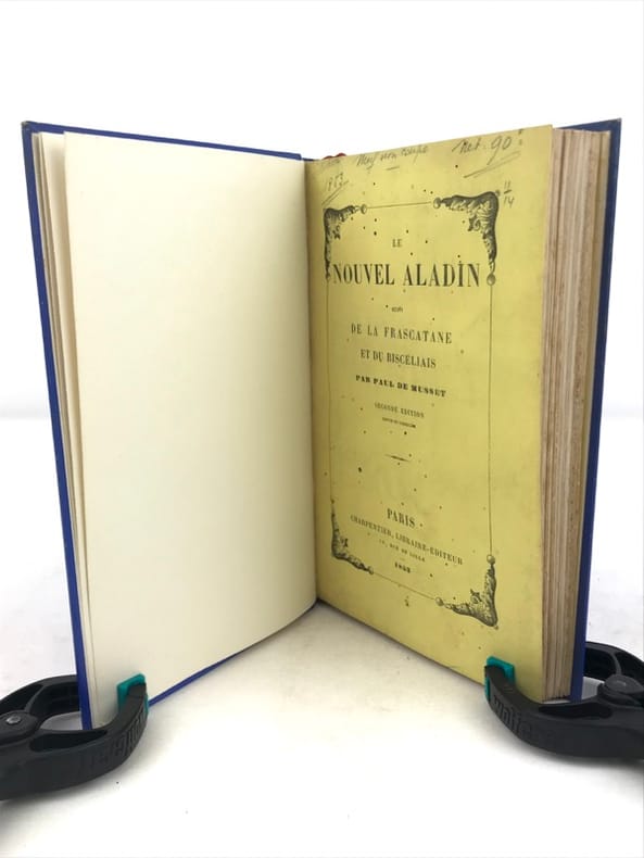 1 volume in-12 (18 cm x 11,5 cm), cartonnage bleu à la bradel, pièce de titre rouge, filets dorés au dos, couverture conservée. [4]-343-[1] pages (complet). Frottements à la pièce de titre, claires rousseurs. État très correct. Seconde édition. Paul-Edme de Musset, (1804-1880), est un homme de lettres français, frère ainé d'Alfred de Musset. Plus connu pour son lien avec son frère cadet que pour sa propre œuvre, il a néanmoins conquis une réputation légitime pour ses restitutions historiques et ses récits de voyages en Italie, qui a inspiré une partie de ses œuvres, ses essais fantaisistes et de jolis romans d'un style élégant et sobre. On cite parmi les meilleurs : la Tête et le Cœur ; Anne de Boleyn, Mme de La Guette ; les Femmes de la Régence. Agréable exemplaire.
