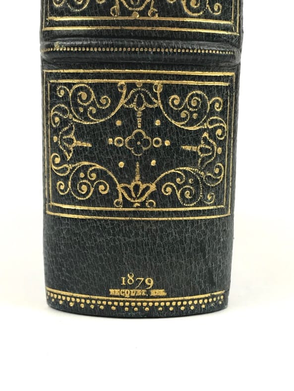 Le plus précieux exemplaire cité par Brunet. Amsterdam, Aux dépens de la Compagnie, 1731. 7 volumes petit in-12. « Sept vol. pet. in-12 de (2) ff., 218 pp et (1) f.bl., 173 pp. et (1) f.bl. ; (1) f. et 232 pp. ; (1) f., 221 pp. et (1) f.bl. ; (4) ff. dont 1 bl. et 288 pp. ; (2) ff. dont 1 bl. et 283 pp., (2) ff. dont 1 bl. et 344 pp. (Le relieur n’a pas conservé les ff. blancs). Le septième volume contient l’édition originale de Manon Lescaut. Les tomes I, III, V et VII sont ornés d’une vignette sur cuivre et les tomes II, IV et VI d’un fleuron sur bois. Seuls les trois derniers volumes possèdent un faux-titre, ici non conservé par le relieur. » (Tchemerzine). Plein maroquin bleu janséniste, dos à nerfs, filets or sur les coupes, roulette intérieure, tranches dorées sur marbrures. Reliure de Thibaron-Joly. 127 x 73 mm.
