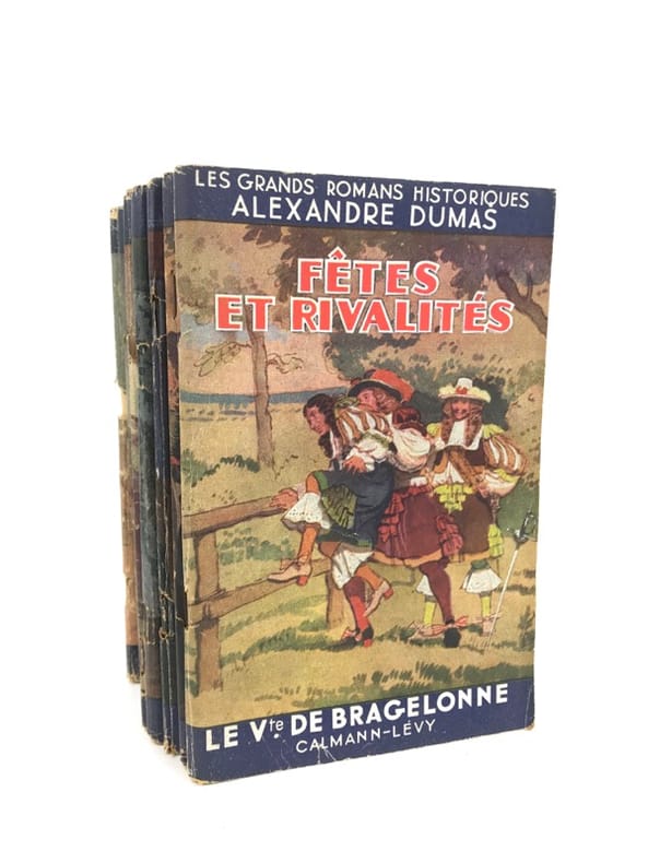 Calmann-Lévy Les Grands Romans Historiques Dos agrafé 1948 14 volumes agrafés in-12 de 128 pages chacun, pagination continue 1792 pages au total. Voici la répartition des titres : 1. Le vicomte de Bragelonne 2. Un audacieux coup de main 3. Le lever du soleil 4. Mission secrète 5. Fêtes et rivalités 6. Amour et ambition 7. Le moine mystérieux 8. Une fatale lettre d'amour 9. Un duel dans la nuit 10. La dame masquée parle 11. L'énigmatique prisonnier 12. Le sosie du roi 13. Le masque de fer 14. La fin des quatre, imprimé par Brodard et Taupin en 1948 et distribué par les N.M.P.P. ; dos du premier et dernier volume scotchés, ensemble propre pour des fascicules de cet époque. Livraison a domicile (La Poste) ou en Mondial Relay sur simple demande.