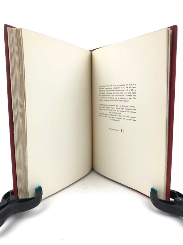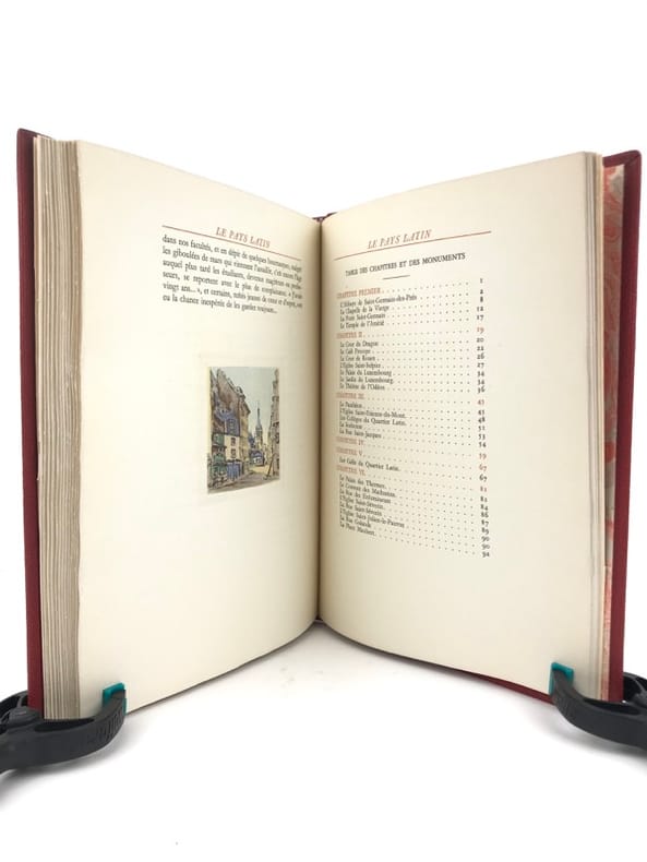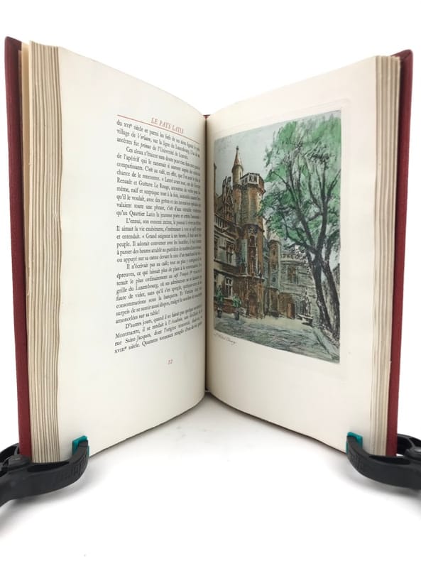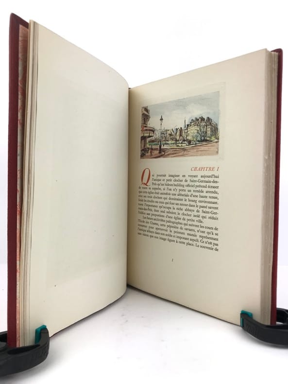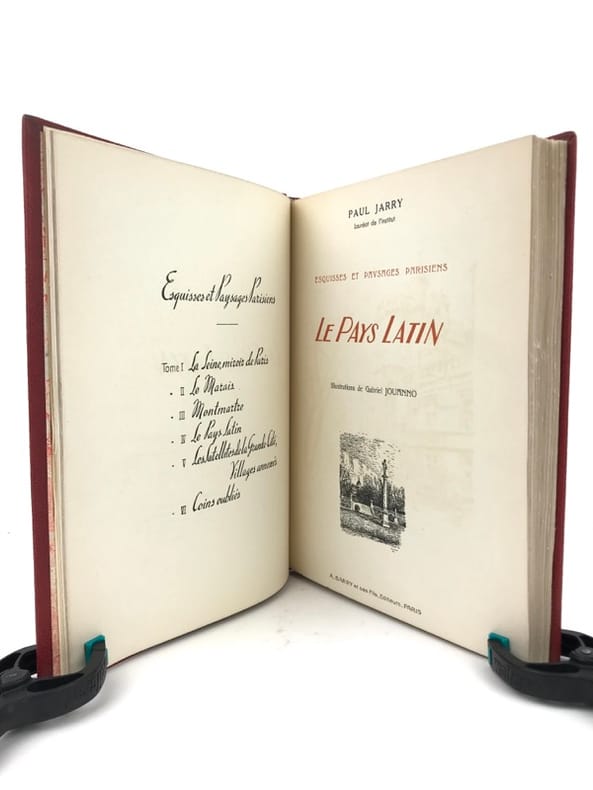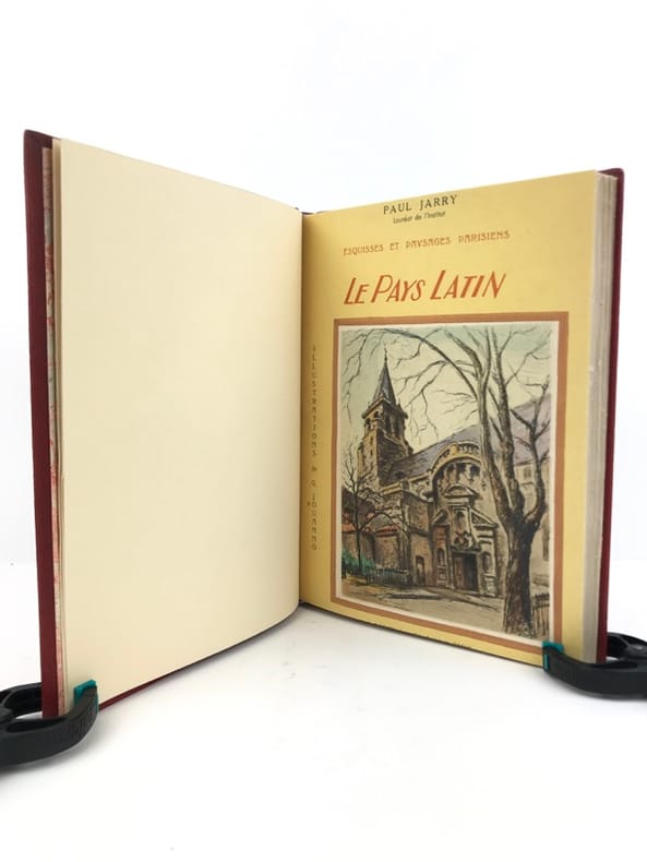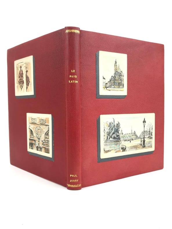 1 volume in-4 (23,5 x 17,5 cm), basane rouge (reliure signée L. S. et datée de 2005), couverture conservée, dos lisse orné, images sur les plats, [4]-93-[7] pages (texte complet). Sans la suite. Bon état. Le tirage de cet exemplaire a été limité à 500 exemplaires numérotés ; les exemplaires numérotés de 13 à 37 sont initialement accompagnés d’une suite en couleurs de toutes les illustrations (exemplaire n°15). ÉDITION ORIGINALE, comprenant 13 illustrations hors-texte, et de nombreuses vignettes in-texte, le tout en couleurs. Paul Jarry (1879-1948) est un auteur français, membre de la Commission du Vieux-Paris et de la Commission départementale des antiquités et des arts de Seine-et-Oise. Agréable exemplaire.