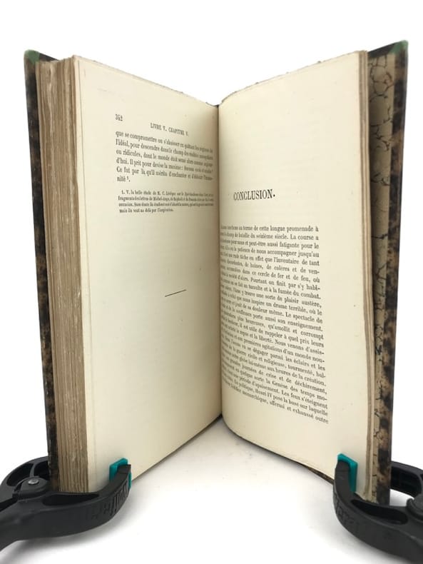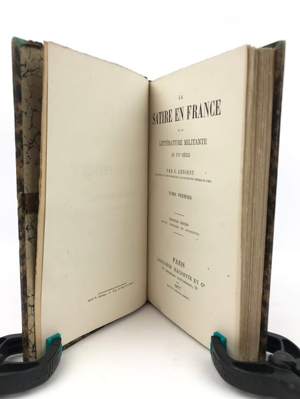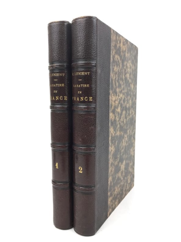 2 volumes in-8 (19 cm x 11,5 cm), demi-chagrin mauve (reliure de l’époque), dos à nerfs. xvi-324 ; [4]-355-1 bl. pages (complet). Bon état. Nouvelle édition. Charles Félix Lenient est un universitaire et homme politique français (1826-1908). Brillant élève, il est reçu premier à l'École normale supérieure en 1847 ainsi qu'à l'agrégation de lettres en 1850. Il devient professeur à Montpellier, puis à Paris au lycée Napoléon. Le 20 novembre 1855, il soutient ses deux thèses de doctorat de lettres à la Faculté de Paris. La première, en français, consiste en une étude sur Pierre Bayle. La deuxième, en latin, aborde la guerre cicéronienne. Il devient ensuite maître de conférences de langue et littérature française à l'École normale supérieure en 1865. Agréable exemplaire.