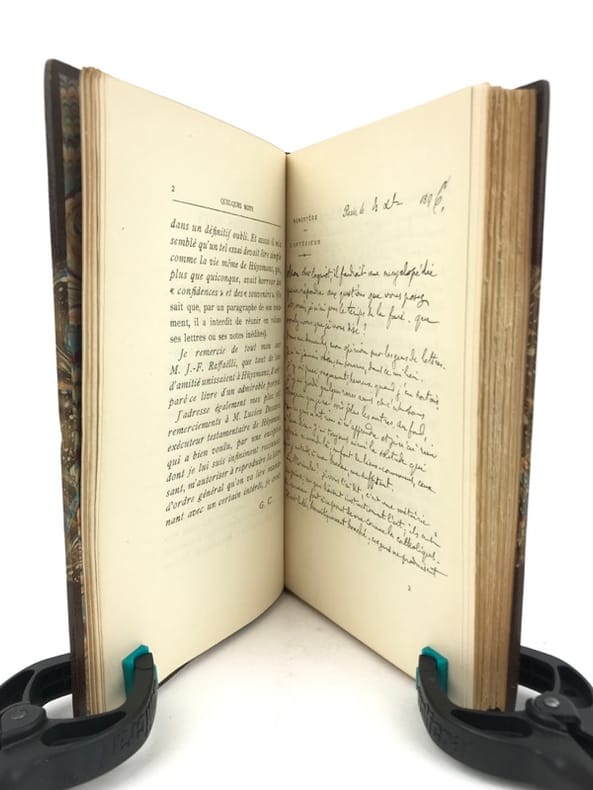 Édition originale de cette biographie d'Huysmans. Elle est illustrée d'un portrait de cet auteur par Raphaëlli, de bandeaux et culs-de-lampe fantaisistes de Lucien Laforge et comprend un fac-similé d'une lettre de lui adressée à Coquiot. Cet exemplaire est enrichi d'une carte de visite avec 3 lignes autographes de Coquiot évoquant un prochain ouvrage sur Toulouse-Lautrec. Voir photographie(s) / See picture(s) * Membre du SLAM et de la LILA / ILAB Member. La librairie est ouverte du lundi au vendredi de 14h à 19h. Merci de nous prévenir avant de passer,certains de nos livres étant entreposés dans une réserve.
