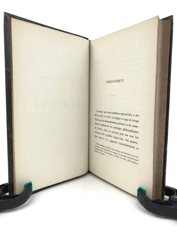 Très rare édition originale posthume qui manque à la BNF et au C.C.Fr. « L'ouvrage que nous publions aujourd'hui a été fait en 1815 et 1818 ; et malgré ce laps de temps il doit, par les démonstrations précises et les nombreuses applications des principes philosophiques de l'auteur, jeter un nouveau jour sur tous les ouvrages qu'il a publiés depuis lors… (Avertissement) ». Caillet, III, 11500 : « Très rare ». Ex-libris manuscrit : « Augustine Leroy 1866 ».