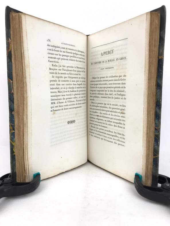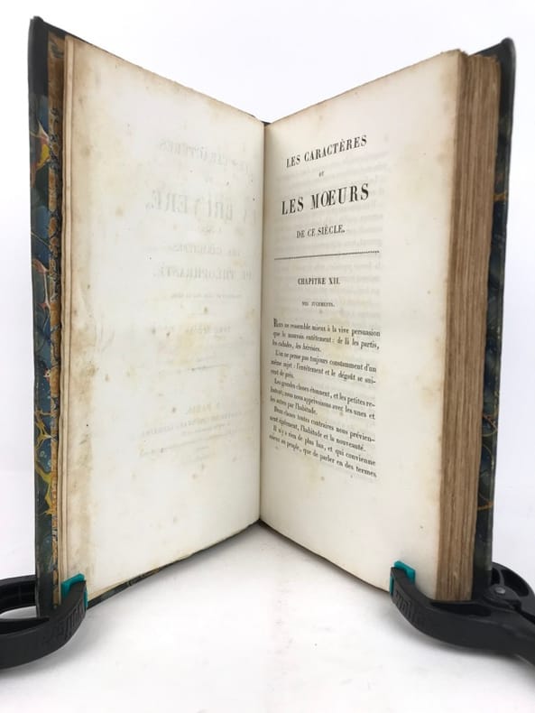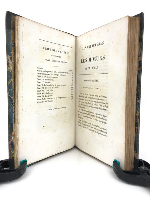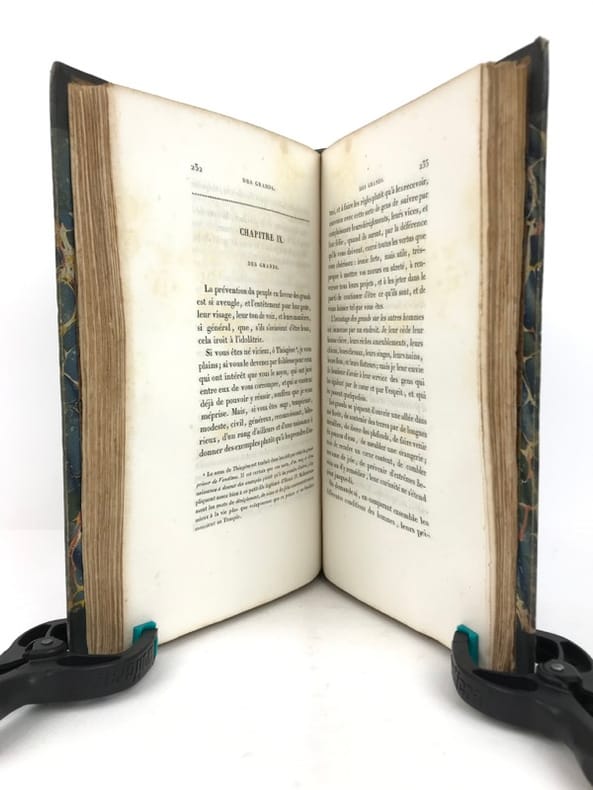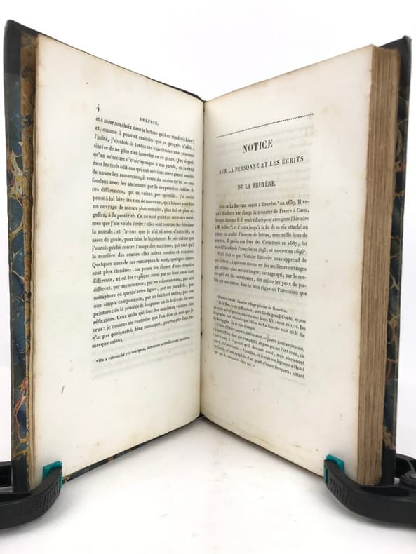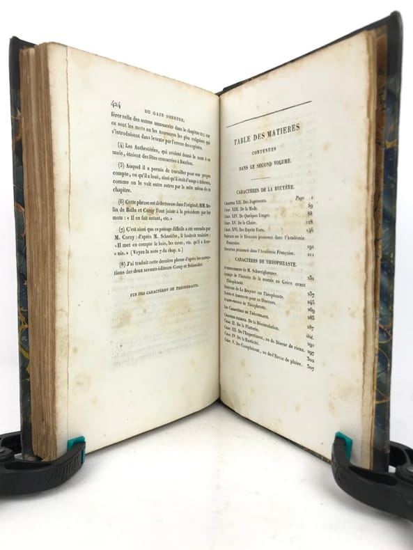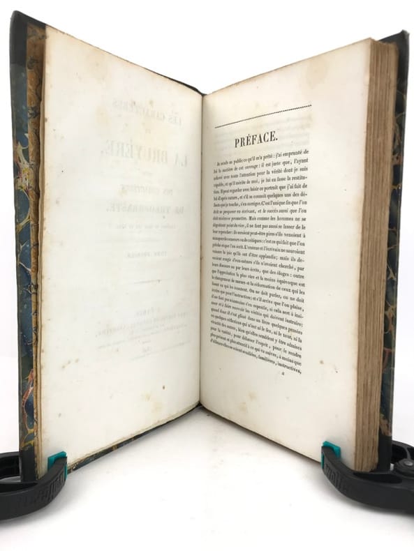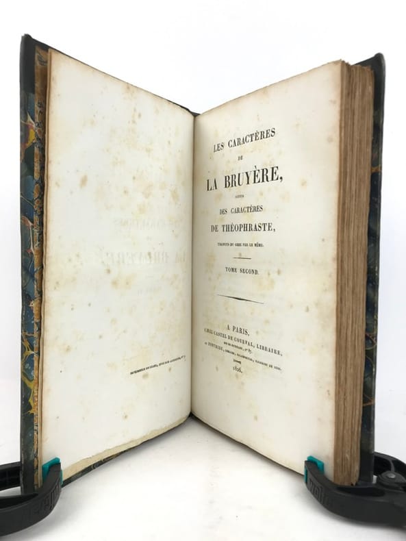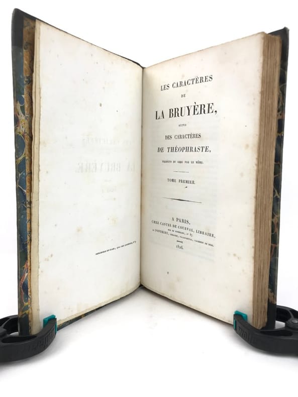 Les Caractères de La Bruyère suivis des Caractères de Théophraste, traduits du grec par le même; précédés d'une notice sur La Bruyère considéré comme écrivain et moraliste par J. Simonnin. (Paris: Emler frères, 1829). [M.C.: Littérature]