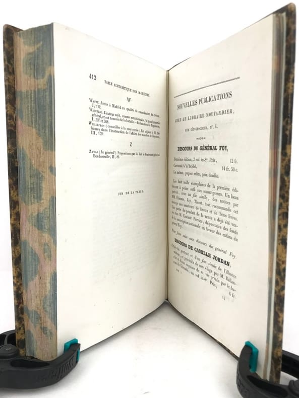Paris, Moutardier 1827- Complet en 3 tomes: xv,360 + 368 + 412pp. orné de deux fac-similes et du portrait de l'auteur, 4e éd., 22cm., reliures uniformes cart. (plats marbrés, dos en cuir avec titre et décorations dorées, coins frottés, charnières fragiles et/ou peu restaurées), quelques rousseurs, texte et intérieur en bon état, G86853