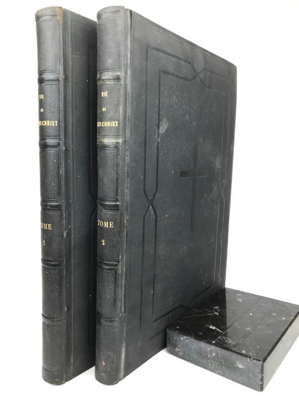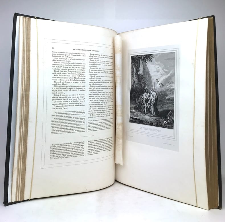Deux volumes in-folio (44x30 cm. Demi chagrin noir, sur les plats une croix repoussée et deux lettres dorées, percaline grainée noire, dos à nerfs titre et tomaison dorés, toutes tranches dorées. Illustré par Natalis J. de 130 gravures sur acier tirées sur papier de Chine, grande marge, Paris Pilon. Rousseurs principalement sur serpente et plus prononcée en bas de pages fin du tome I. Tome I : 160 pages, Tome II : 111 pages, Intérieur des deux tomes très frais.