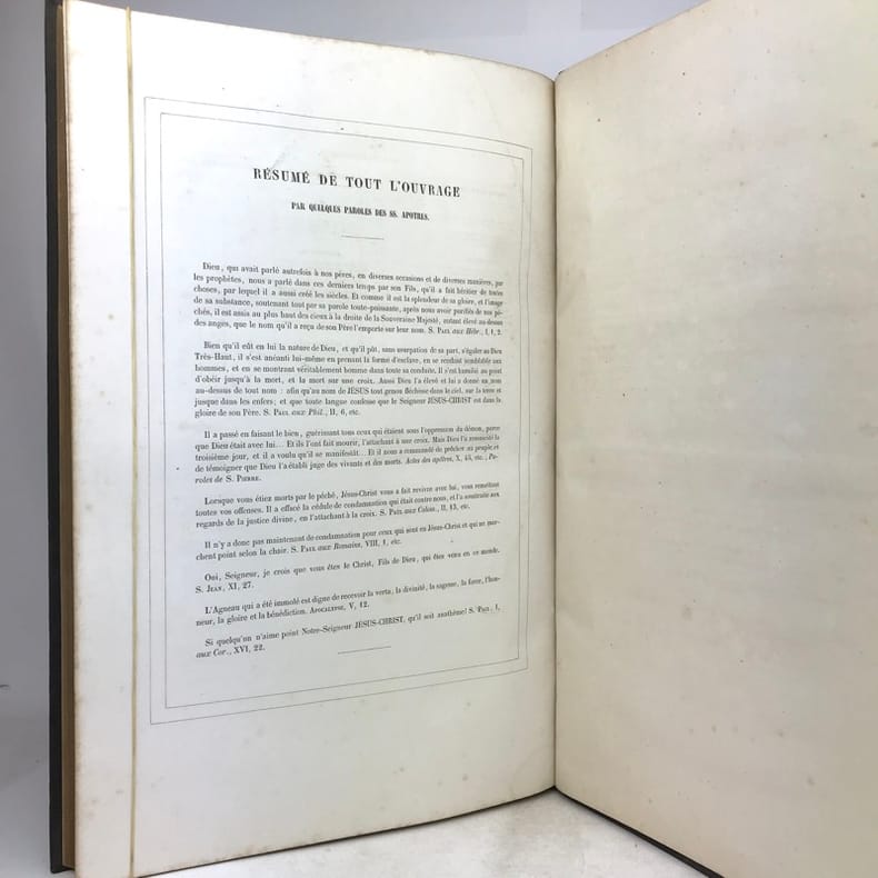 L'ouvrage n'est pas daté, cependant 1853 est la date d'autorisation papale. "Mon fils, le blanc sur la page n'est ni espace ni représentation du silence, mais un vide qui relie le visible à l'invisible", Maurice Roche.