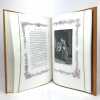 Superbe exemplaire conservé dans une magnifique reliure en maroquin rouge à grande plaque dorée dite «à l’indienne» attribuable à Simier. Paris, L. Curmer, 49 rue Richelieu, 1838. Grand in-8 de lvi pp., 315 pp., 1 frontispice, 1 portrait, 1 carte et 30 planches pour Paul et Virginie; La Chaumière indienne occupe les pp. 317 à 418avec 4 planches ; la Flore de Paul etVirginie occupe les pp. 419 à 458; (14) pp. Les 37 gravures sont protégées par des serpentes. Relié en plein maroquin rouge, dos lisse et plats très richement ornés de grandes plaques dorées orientalisantes dites «à l’indienne», roulette dorée sur les coupes, roulette intérieure dorée, tranches dorées, gardes de papier blanc moiré. Reliure de l’époque attribuée à Simier. 254 x 161 mm.