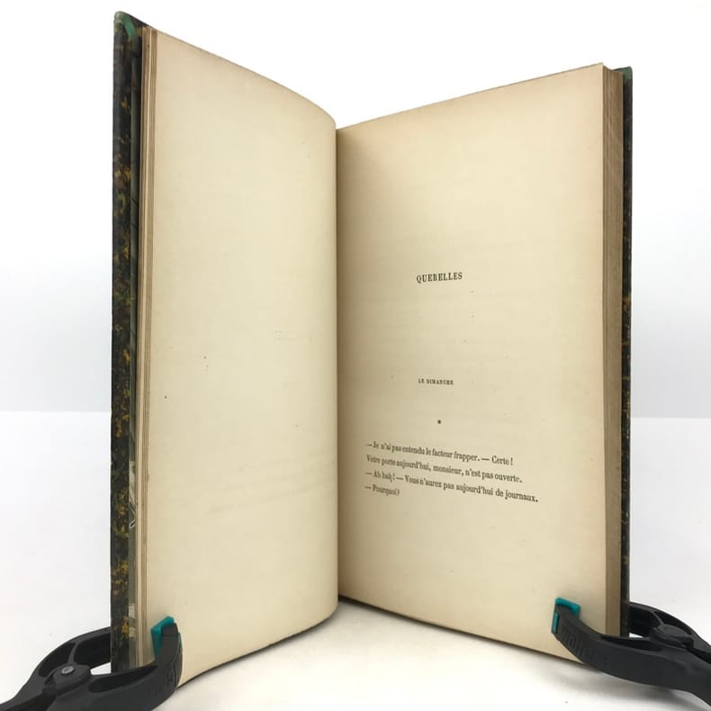 Paris, Calmann Lévy / Ancienne maison Michel Lévy Frères, 1878 - Paris, Calmann Lévy / Ancienne maison Michel Lévy Frères, 1880. 2 ouvrages reliés en 1 vol. au format in-8 (237 x 153 mm) de 1 f. bl., 2 ff. n.fol., 169 pp. et 1 f. n.fol. ; 3 ff. n.fol., 141 pp., 1 f. n.fol. et 1 f. bl. Reliure de l'époque de demi-chagrin glacé lie-de-vin, dos à nerfs orné de filets gras à froid, doubles filets dorés, titre doré, fine palette dorée en tête et queue, tranches mouchetées.