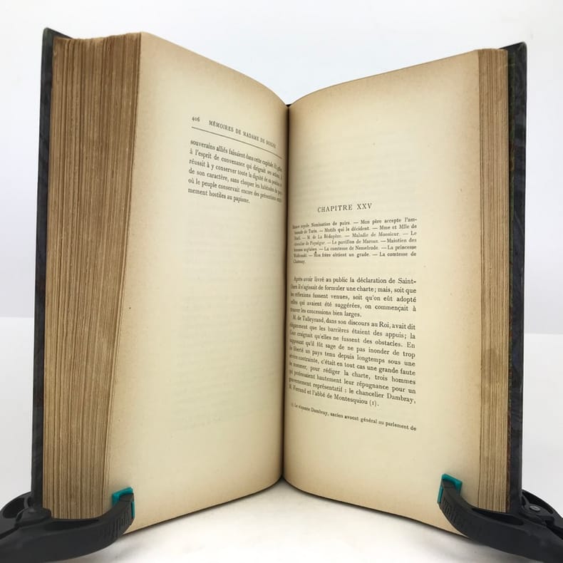Paris Librairie Plon. Plon-Nourrit et Cie, Imprimeurs-Editeurs, 1907-1908 1907 in 8 (22x14) 4 volumes reliures demi basane marron de l'époque, dos lisses ornés de filets dorés, 505 pages, 434 pages, 448 pages, 547 pages, coiffes du tome 1 arasées, mors supérieur du tome 1 et mors inférieur du tome 4 fendus, quelques rousseurs éparses. Tome I: 1781-1814. Tome II; 1815-1819. Tome III: de 1820 à 1830. Tome IV: 1831-1866. Eléonore-Adèle d'Osmond, comtesse de Boigne, 1781-1866. Tome 1: Du règne de Louis XVI à 1820. Tome 2: de 1820 à 1848. Bon exemplaire de travail ( Photographies sur demande / We can send pictures of this book on simple request )