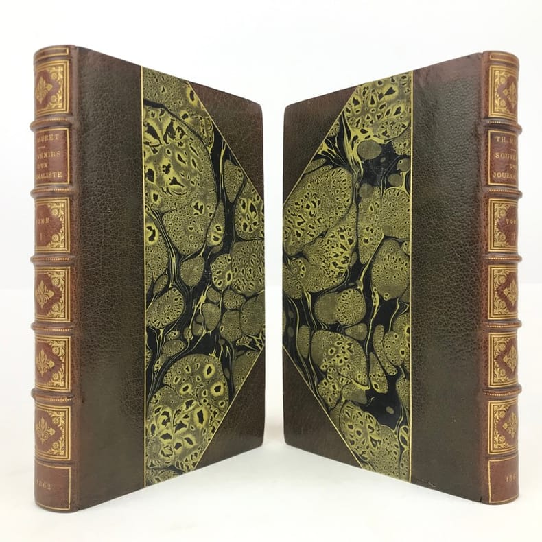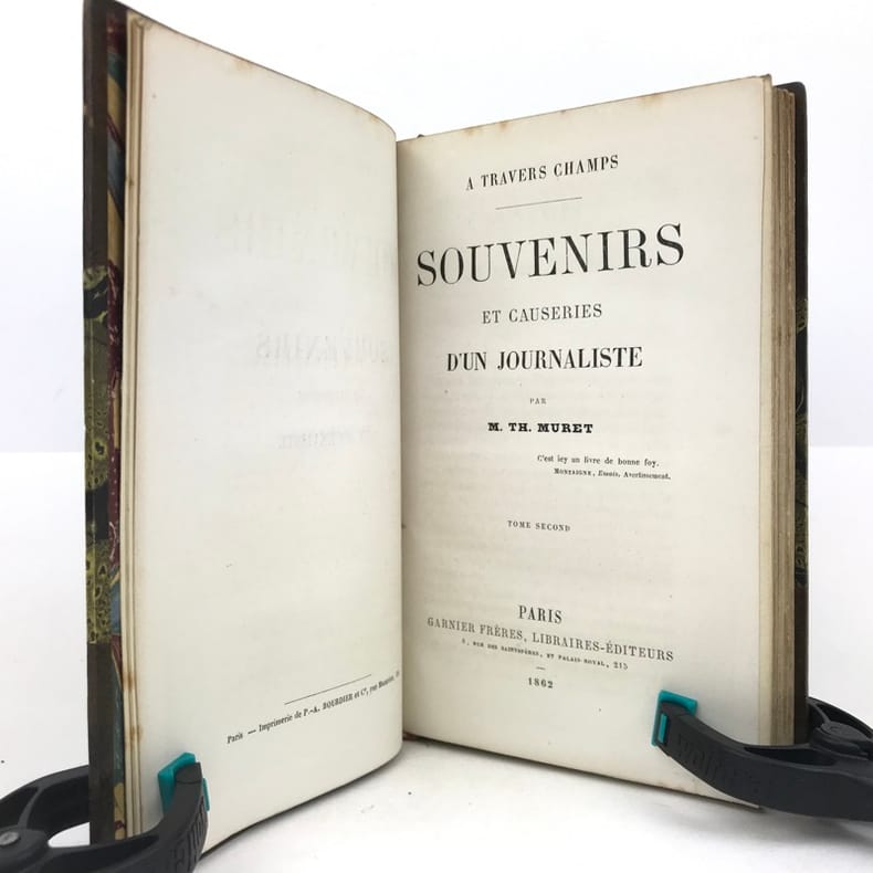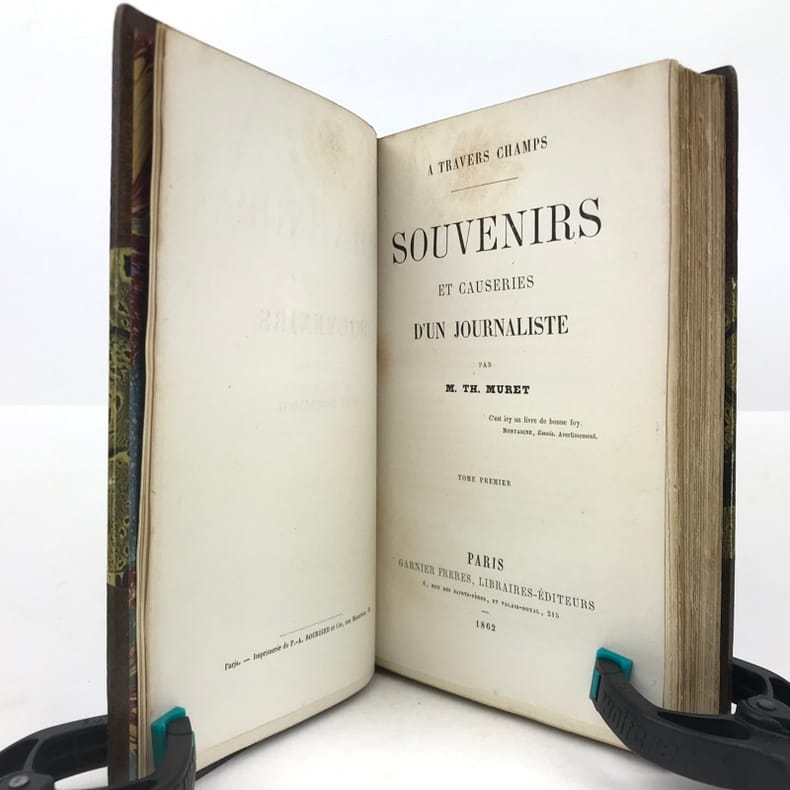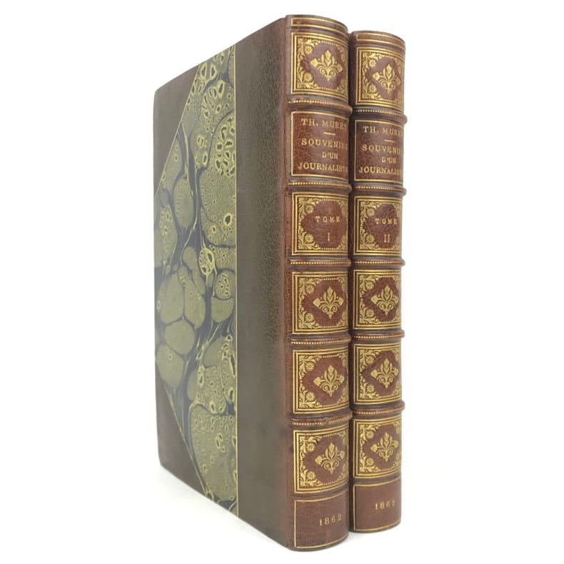 2 volumes in-12 (18 x 11,5 cm), demi-maroquin fauve à coins (reliure de l’époque signée Champs), couverture conservée, dos à nerfs orné, filet doré sur les coupes, tranche de tête dorée, viii-372 ; [4]-367-[1] pages (complet). Dos insolés, quelques fines rousseurs. Bon état tout de même. Nouvelle édition, comprenant 31 fac-similés et portraits hors-texte. Théodore Muret (1808-1866) est un auteur dramatique, poète, essayiste et historien français. PROVENANCE : étiquettes d’ex-libris d’André Barrier (Président à la Cour des comptes et Président des Cent Bibliophiles) et de Serge Barrier. Agréable exemplaire.