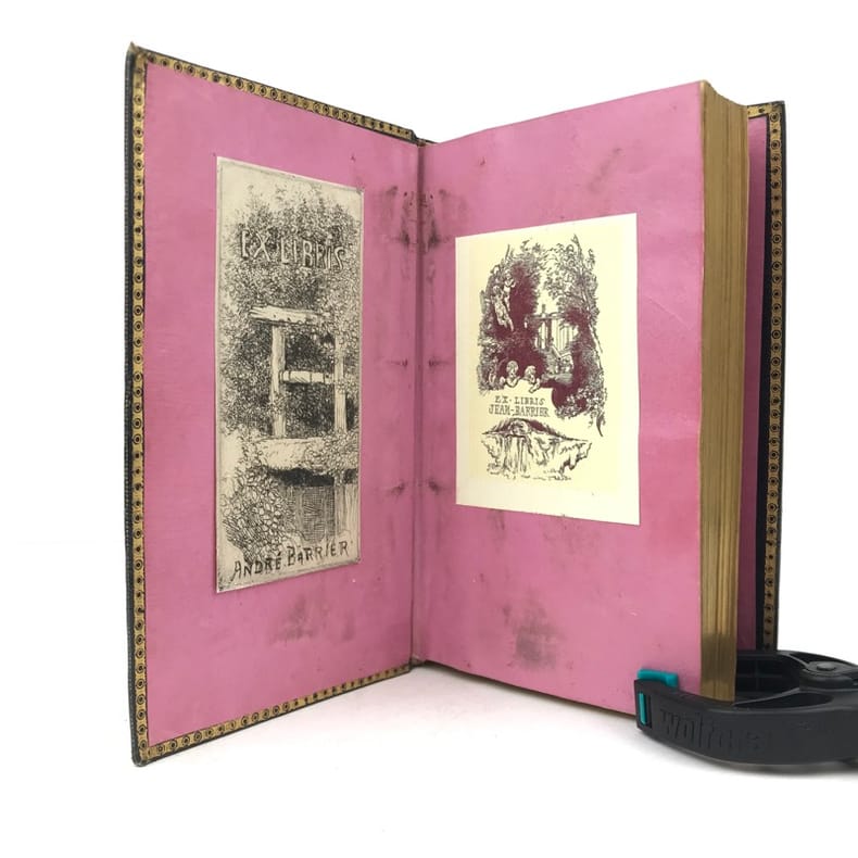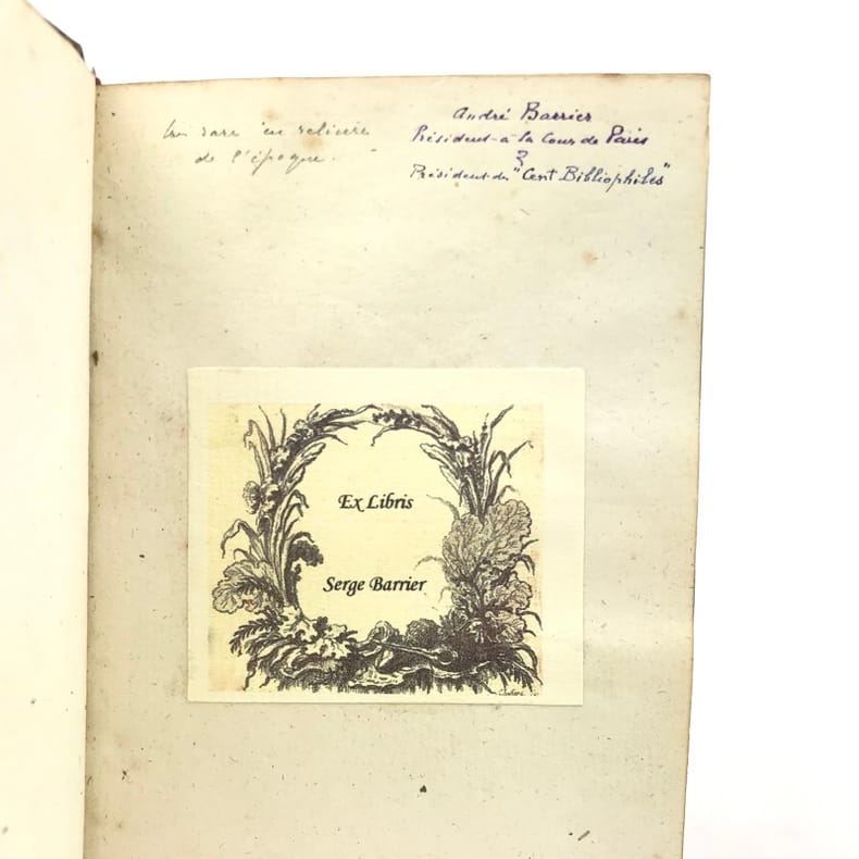 1 volume in-16 (15 x 9 cm), maroquin bleu à grains longs (reliure romantique de l’époque), dos à nerfs orné, décor à froid sur les plats avec encadrement doré, filet doré sur les coupes et sur les chasses, tranches dorées, [8]-368 pages (complet). Quelques feuillets brunis, rousseurs. État très correct tout de même. Nouveau tome paru en 1831, faisant partie d’une série de publications lancée en 1823, sous le titre de Tablettes romantiques : recueil orné de quatre portraits inédits. Il est illustré de huit gravures hors-texte. La direction littéraire de ces recueils est à partir de 1829 confiée à Charles Malo (1790-1871), polygraphe, chansonnier, et secrétaire général de la Société pour l'instruction élémentaire. La publication de ces recueils de textes littéraires romantiques se poursuivra jusqu’en 1836 et 1837, avec deux nouveaux titres : La Corbeille d'or : annales romantiques et L'Anémone : annales romantiques : souvenirs de littérature contemporaine. PROVENANCE : étiquettes d’ex-libris d’André Barrier (Président à la Cour des comptes et Président des Cent Bibliophiles), Jean Barrier et de Serge Barrier. Agréable exemplaire.