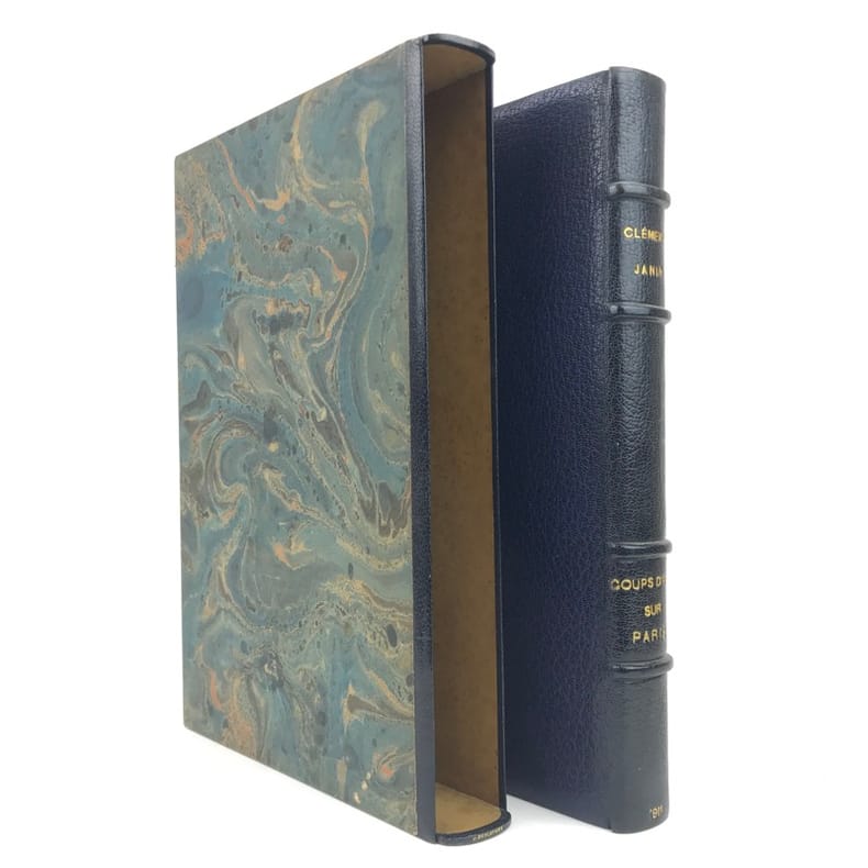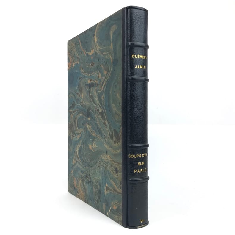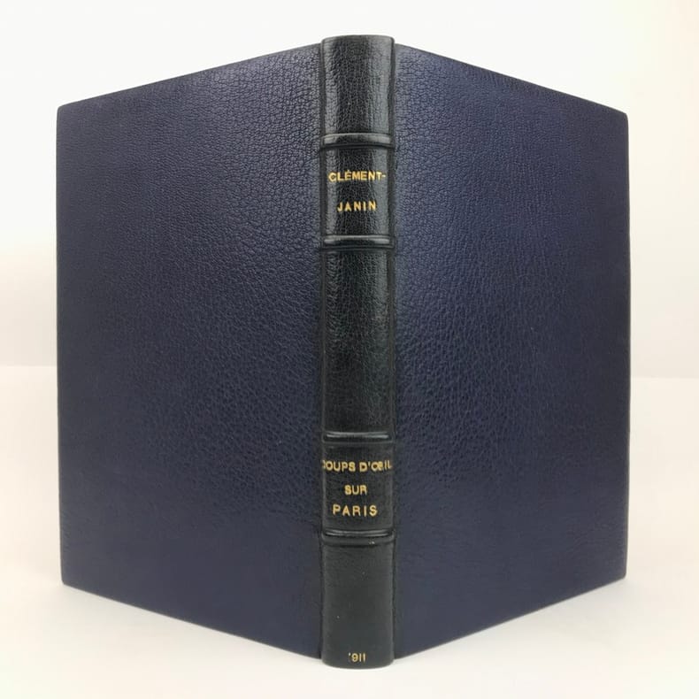 1 volume in-4, non rogné (28 x 19 cm), maroquin bleu marine (reliure de l’époque signée J. Deglatigny), dos à nerfs, large bordure intérieure ornée de filets dorés et à froid, tranches dorées, couverture illustrée et dos conservés, étui signé, 152-[6] pages (complet). Très bon état. Édition illustrée de 84 compositions du peintre et graveur Charles Heyman (1881-1915) ; 21 eaux-fortes, dont une sur la première de couverture et 20 planches hors texte ; et 63 dessins in texte gravés sur bois par Pierre-Eugène Vibert. Tirage à 340 exemplaires, celui-ci 1/250 sur papier d’Arches, (n°155). Hilaire Noël Sébastien Clément, dit Clément-Janin (1862-1947), est un écrivain et critique d'art français, qui fut directeur de publication, éditeur scientifique, bibliophile et spécialiste de l'histoire moderne de la gravure. Très bel exemplaire, bien complet du prospectus de parution relié in-fine.