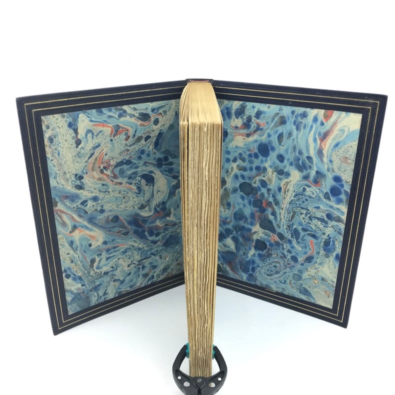 1911 Paris, Ch. Hessèle, 1911, 152 pp., (4) pp. d'annonce de la souscription in fine, très jolie reliure signée F. AFFOLTER de plein maroquin bleu-nuit, dos à nerfs, date en pied, tranches dorées, filet doré sur les coupes, intérieurs des plats doublés de maroquin havane bordés d'un triple encadrement de filets dorés, gardes de soie moirée marron, filets dorés sur les coupes, étui cart. bordé de maroquin bleu-nuit, très bel ex.