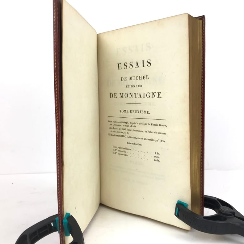 (Les Essais de Montaigne en reliure strictement de l'époque. L'exemplaire d'un membre de la famille De Calonne)