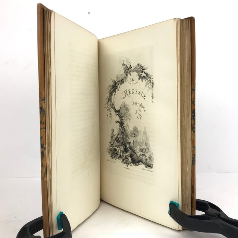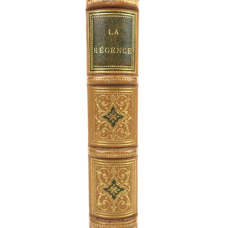 Edition originale "tirée à petit nombre". Frontispice et 3 planches gravés à l'eau forte par E. et L. Rouveyre d'après Marius Perret ; vignettes, lettrines et culs-de-lampe sur bois. Le régent et ses maîtresses, le cardinal Dubois, "Nouvelles à la main", etc. Index.(Vicaire, VI, 1230).Un mors légèrement fendillé.Bel exemplaire, bien relié, très frais, imprimé sur papier vergé de Hollande à la forme, entièrement non rogné.