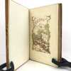 In-8, plein parchemin blanc, dos à 5 nerfs, titre doré, daté en pied, chiffre "F" surmonté d'un heaume doré au centre des plats, dentelle intérieure, tête ciselée de fleurons dorés, gardes de moire blanche, couverture en couleurs conservée (rel. Ch. & L. Hilaire), xxvi, 224, (4) p., frontispice, 3 planches hors texte, vignettes, bandeaux et culs-de-lampe. Paris, Librairie Edouard Rouveyre, 1881.
