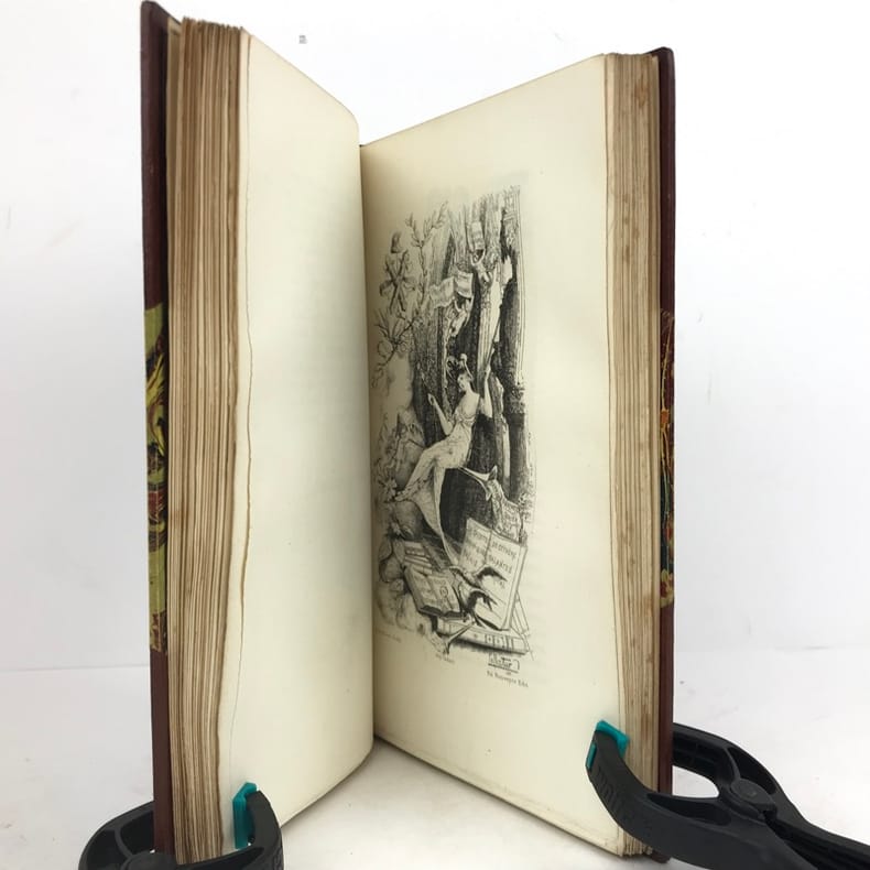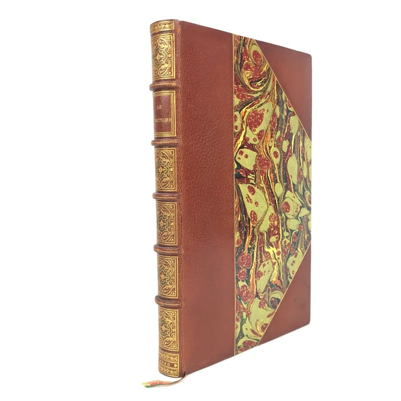 Publié par Roger de Parnes avec préface par Georges d'Heylli. Compositions et dessins de M. J. Le Natur gravés par M.L. Rouveyre, De Malval, Puyplat et Prunaire. Reliure demi-chagrin rouge. Dos à nerfs. Coins émoussés. Couverture et dos conservés. Intérieur très frais. Illustrations en bandeaux et culs-de-lampe. Superbes lettrines. Serpentes. Non rogné. Reliure postérieure.Découpage de la moitié de la première page de préface.