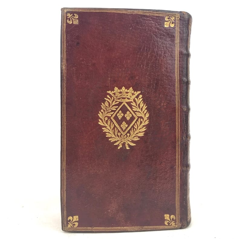 Paris.1731.In-12 en plein maroquin aux armes.787 p.BE.Double filet doré sur les plats.Blason des Orléans .Fleurs de lys aux angles.Tranches dorées.Dos à 5 nerfs avec fleurs de lys dans caissons.