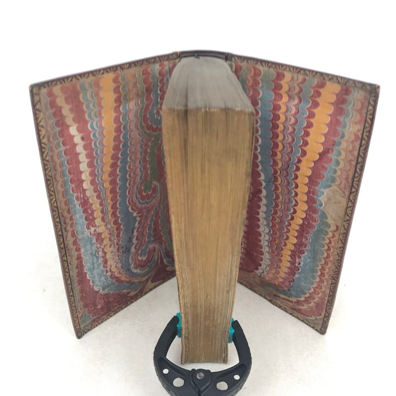 Chez Théodore Le Gras. 1742. In-12. Relié plein cuir. Etat d'usage, Coins frottés, Dos satisfaisant, Quelques rousseurs. XXIV + 744 pages. Signet conservé. Texte sur deux colonnes. Contreplats jaspés. Petite annotation à l'encre en page de garde. Tranches dorées. Dos à 5 nerfs, titre caissons et motifs dorés. Motifs et fleurons dorés sur les plats. 2 photos disponibles.. . . . Classification Dewey : 840.05-XVIII ème siècle