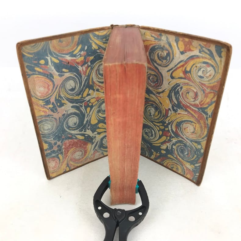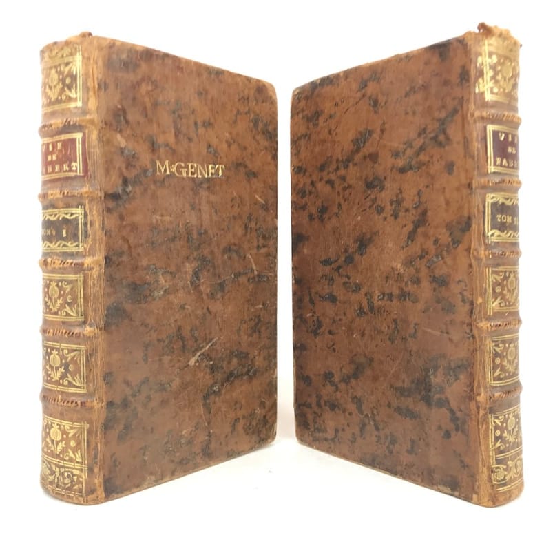 2 volumes in-12 (16,5 cm x 9 cm), veau marbré brun (reliure de l’époque), dos à nerfs orné de motifs dorés, pièce de titre rouge, tranches rouges, supra libris doré de M. Genet. xxiv-499-[5] ; [4]-376 pages (complet). Frottements à la reliure, manque de cuir à la coiffe du tome I, ex-libris cancelé dans le tome I, feuillets brunis. État correct. ÉDITION ORIGINALE illustré d’un portrait en frontispice. Joseph Barre est un historien français (1692-1764). Chanoine régulier de Sainte-Geneviève, il devient chancelier de l'Université de Paris en 1744. Bon exemplaire.