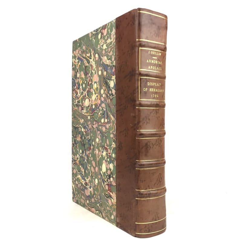 "The Fifth Edition, much enlarged with great variety of Bearings. To Which is added a Treatise of Honour, Military and Civil, According to the Laws and Customs of England, collected out of the most Authentick Authors, both Ancient and Modern by Capt. John Logan." A very nice copy - recently bound in quarter calf with burgundy label and marbled boards. Recent end papers. The rest of the book is original and complete. This is an ex library copy, but the stamps are not too disfiguring. A stamp and a couple of location records to the title page. Otherwise some small stamps to the verso of plates. A few of the pages have minor nicking to the edges - but well away from the text. Slight browning to the pages. Overall though, a good clean copy, with nice clear and well pressed engravings in a flawless binding. The first part of the work (Guillim's) contains hundreds of examples of Arms throughout the text. The second part (the Analogia Honorum) contains two engraved dedications, 9 full page portraits and 105 engraved plates containing hundreds of Arms and honours. All uncoloured. [xiv], 1-317, [ix]. [ii], 3-181, [ix]. pp + plates and engraved portraits. 380 x 250mm (15 x 9Ÿ inches).