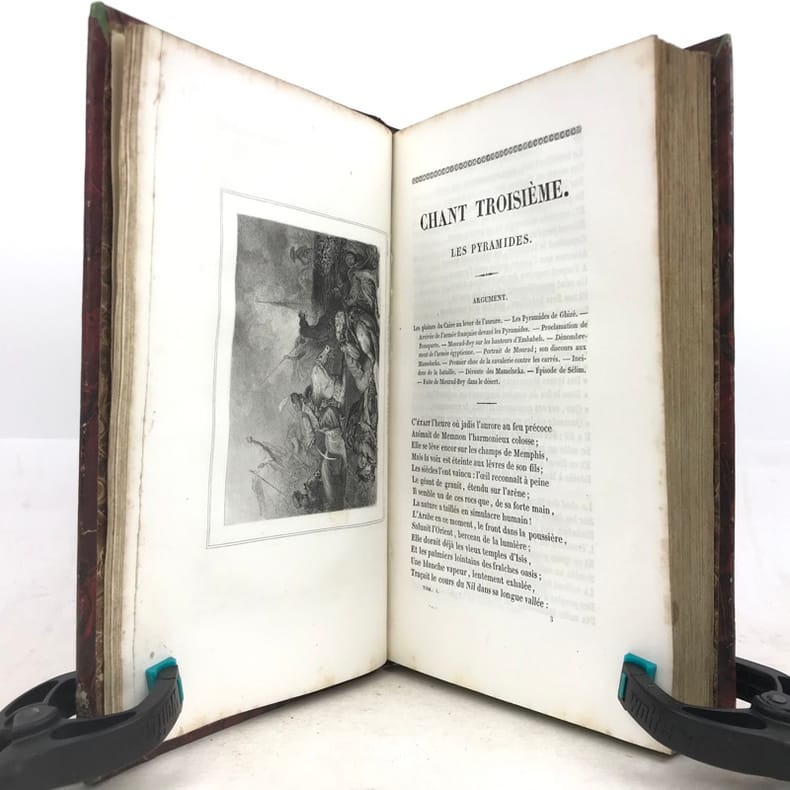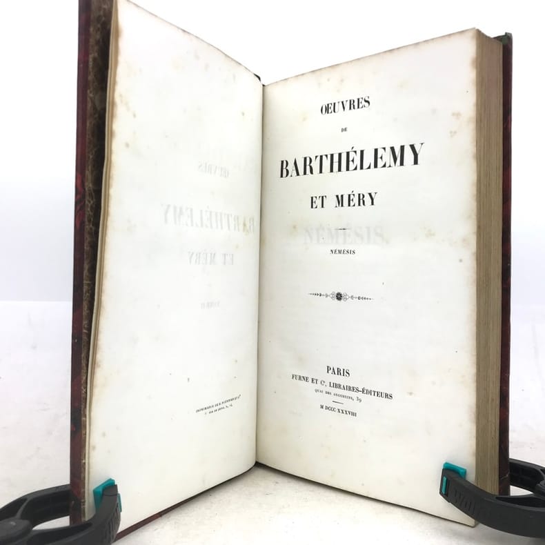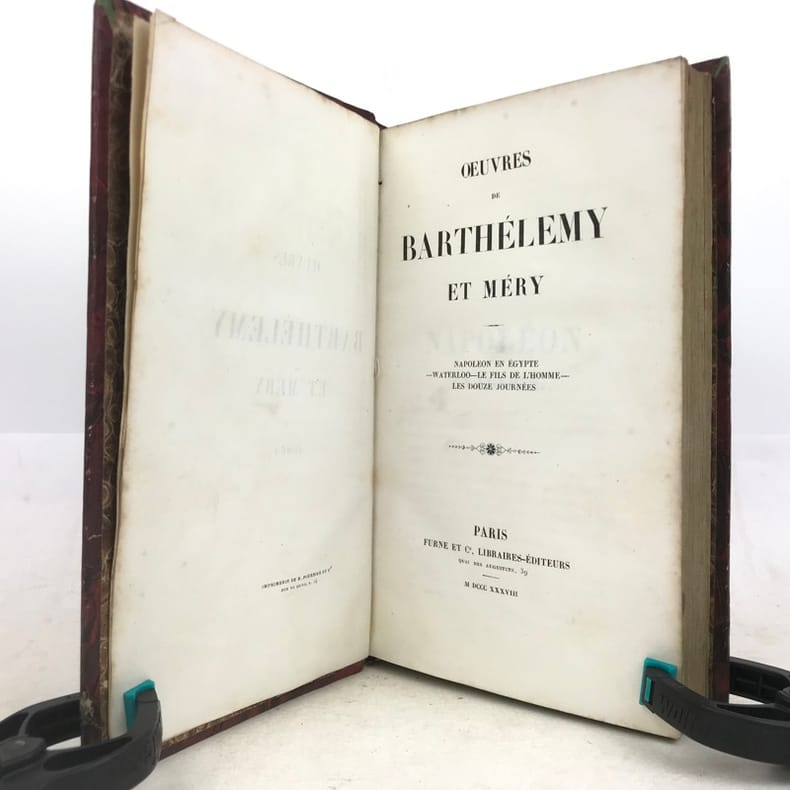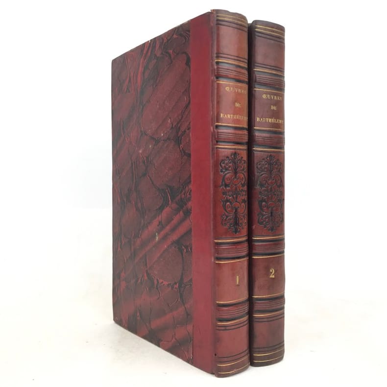 2 volumes in-8 (21,5 cm x 12,5 cm), demi-veau rouge (reliure de l’époque), dos à nerfs orné d’un fleuron noir et de filets dorés et noirs, ex-libris de E. Manson contrecollé sur le contreplat. [4]-415-1 bl. ; [4]-468 pages (complet). Rousseurs éparses. Bon état. Nouvelle édition illustrée de 35 gravures hors-texte. Marseille Auguste Barthélemy, (1794-1867), est un poète satirique français. Son nom est inséparable de celui de son ami et compatriote, Joseph Méry (1798-1866), avec lequel il mena une collaboration si étroite qu'on ne peut pas distinguer leurs personnalités respectives dans leur travail commun. Agréable exemplaire.