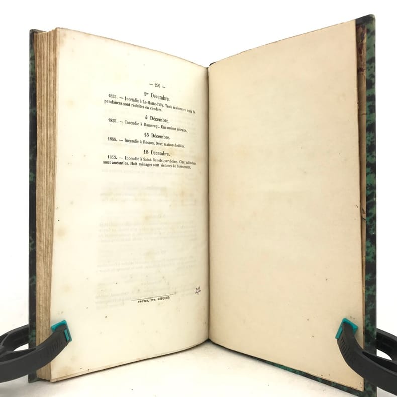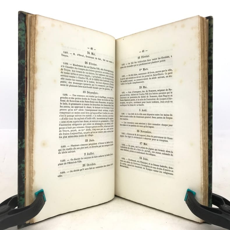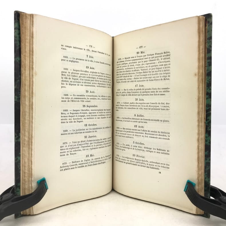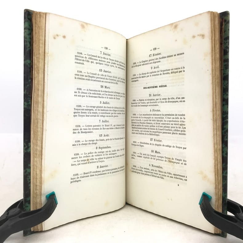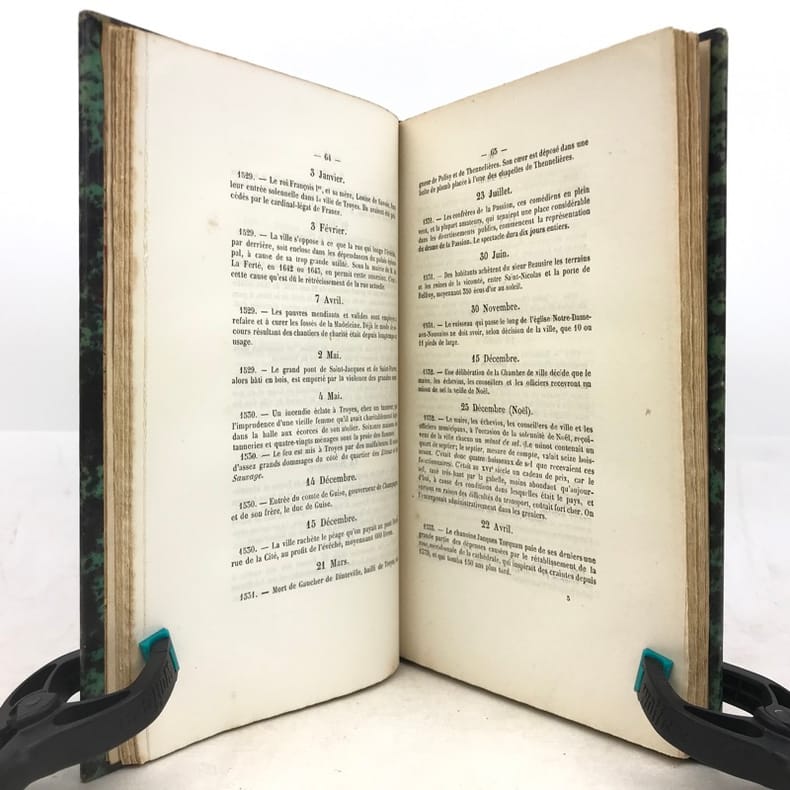 Précieuse chronologie de tous les événements survenus à Troyes du 14 novembre 275 au 18 décembre 1855. Rousseurs sporadiques, concentrées essentiellement au début et à la fin du vol., ex. bien relié. - Frais de port : -France 4,95 € -U.E. 9 € -Monde (z B : 15 €) (z C : 25 €)