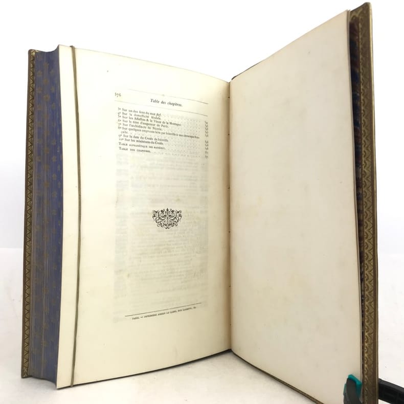 Ouvrage demi cuir coins de cuir entretenu à la cire 213 de la BnF ; forte mouillure sur les marges, qui altère partiellement les dernières pages ; prix adapté ; GLN-498, Chez Adrien Le Clère et Cie, Libraires-Imprimeurs, Rue Cassette, Paris 1867