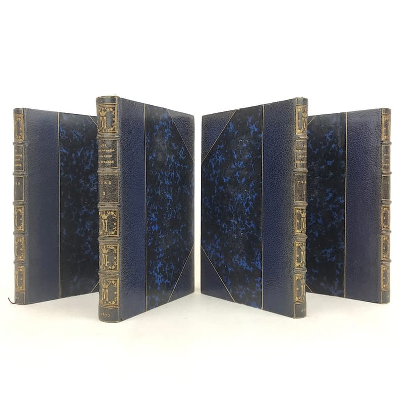 Paris, La Librairie des Bibliophiles [Jouaust], 1872. 4 vol. in-2, LI-160 pp. 3 pl. + 125-136 pp. 1 pl. + 84-91 2 pl. + 79-95-56 pp. 3 pl., demi-maroquin à coins brun, doubles filets dorés sur les plats, dos à nerfs orné de caissons dorés, tête dorée, couverture conservée (quelques petites taches ou rousseurs éparses).