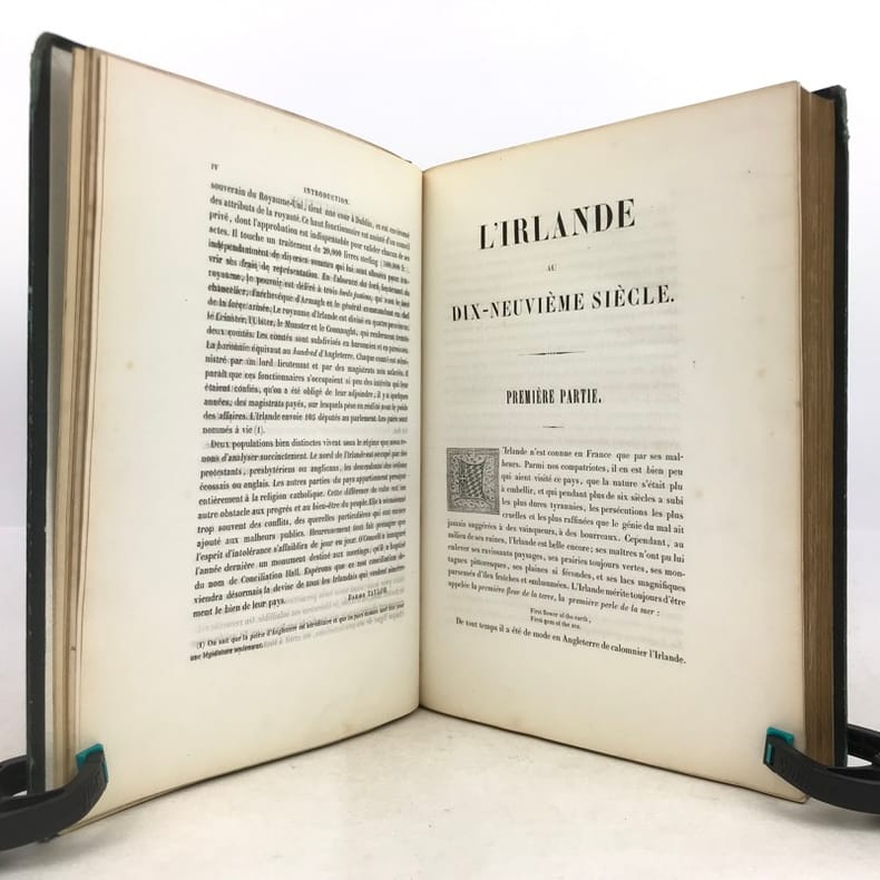 Joli livre romantique dédié à Gustave de Beaumont avec une préface du baron Taylor et illustré d'un titre-frontispice montrant le château de Dangan, une carte de l'Irlande et de 62 gravures sur acier. Bon exemplaire, ne comportant que très peu de rousseurs ce qui est rare. - - VENTE PAR CORRESPONDANCE UNIQUEMENT
