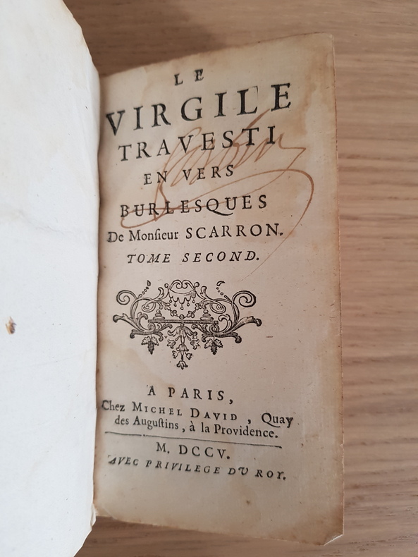 Le Virgile travesti en vers burlesques Paul Scarron Paris, chez Michel David, 1705 2 volumes Signé "Fortin" sur les 2 volumes Relié, état satisfaisant