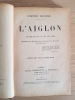 L’Aiglon est un drame en vers d'Edmond Rostand écrit en 1900. Il narre, de façon romancée, les dernières années et la mort du duc de Reichstadt, fils de Napoléon Iᵉʳ. La pièce, qui fait intervenir 52 acteurs, fut représentée pour la première fois le 15 mars 1900 au théâtre Sarah-Bernhardt. Vienne, Schönbrunn, Metternich, un empire qui se croyait éternel malgré l'ombre de Napoléon qui pèse encore sur l'Europe à travers un jeune homme irrésistible de charme, de fragilité et de mélancolie, une sorte d'Hamlet androgyne qui fut le grand rôle de Sarah Bernhardt et qui était le duc de Reichstadt, le fils de l'Ogre et de l'Aigle : le roi de Rome, l'Aiglon. Les ailes de l'Aiglon naissent, s'ouvrent, palpitent au souvenir de tant de puissance et de gloire, tels que les évoque devant lui Séraphin Flambeau, le grognard légendaire de la Grande Armée. Mais l'histoire n'aime pas les redites et les ailes meurtries vont bientôt se fermer. Le roi de Rome mourra comme il a vécu, en prince autrichien, la pièce se terminant sur la réplique fameuse de Metternich (qui a eu tout de même un peu peur) : " Vous lui remettrez son uniforme blanc." vol.in8, relié demi cuir, 200x150, bel exemplaire, 262pp. Paris. Charpentier & Fasquelle 1904 ref/c91
