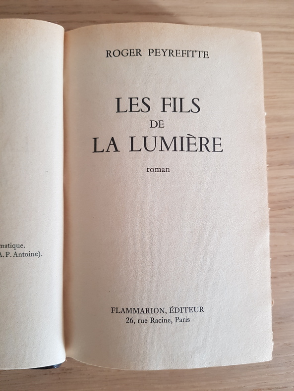 Les fils de la lumière Roger Peyrefitte Paris, Flammarion, 1961