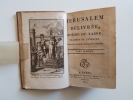 Paris, Musier Fils, 1774 ; grand in-8, 2-VIII-342 pp. + 12 pl. hors-texte, 2-VI-332 pp. + 13 pl. hors-texte, reliure d'époque demi-cuir, dos lisse orné, pièces de titre et de tomaison, (manque sur le vol. 2) plats en veau restaurés, ornés de filets, avec pages de garde à motif queue de paon, tranches dorées (traces de mouillures). Nouvelle traduction par Charles-François Lebrun, troisième consul, duc de Plaisance…. Torquato Tasso, dit le Tasse, célèbre poète italien de la Renaissance, naquit en 1544 à Sorrente et mourut en 1595 à Rome. Il publia de nombreux ouvrages. Il est intéressant de noter que ce poème italien, la Jérusalem délivrée (1575) se trouve facilement, alors que son pendant, la Jérusalem conquise (1593) est quasiment introuvable en édition moderne ou ancienne. Il s’agit pour le présent volume d’une nouvelle traduction, rédigée en 1581, récit de la Première Croisade, durant laquelle les chrétiens menés par Godefroi de Bouillon réussirent à prendre Jérusalem aux musulmans. Illustré par de nombreuses gravures en taille-douce. Bon état.