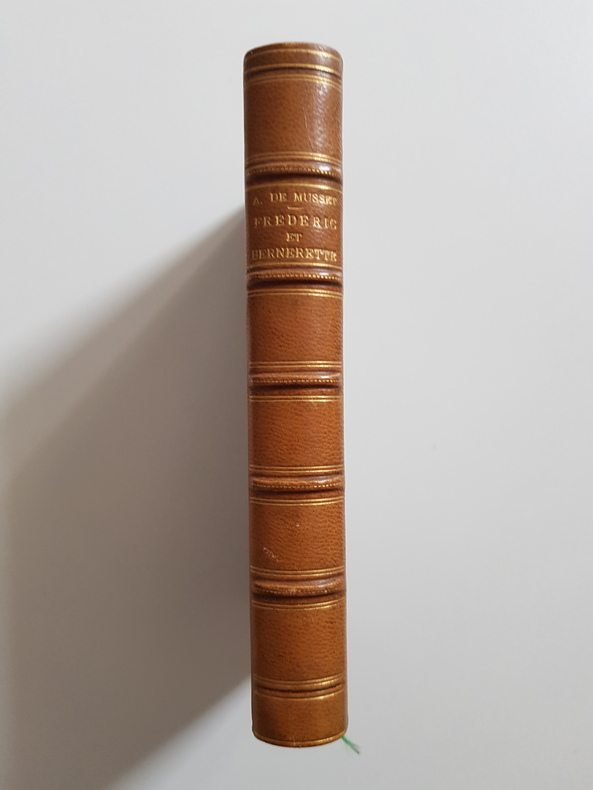 illustrations de Myrbach, gravées par Privat-Richard Frédéric et Bernerette, écrit par Alfred de Musset, est un roman qui explore les thèmes de l'amour, de la passion et de la tragédie. L'histoire se déroule dans un contexte romantique où les personnages principaux, Frédéric et Bernerette, luttent contre les conventions sociales pour vivre leur amour interdit. volume relié demi toile, 145x85, très bel état, intérieur proche du neuf, 142pp. Couverture conservée Paris, Alphonse Lemerre, 1893. ref/102