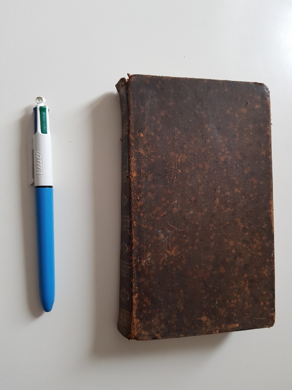 Reliure pleine basane marron avec petits pois noir et rouge. Dos lisse avec filets et mosaïques dorées. Tranches marbrées. Intérieur propre, quelques feuillets jaunis. Gravure en frontispice.
