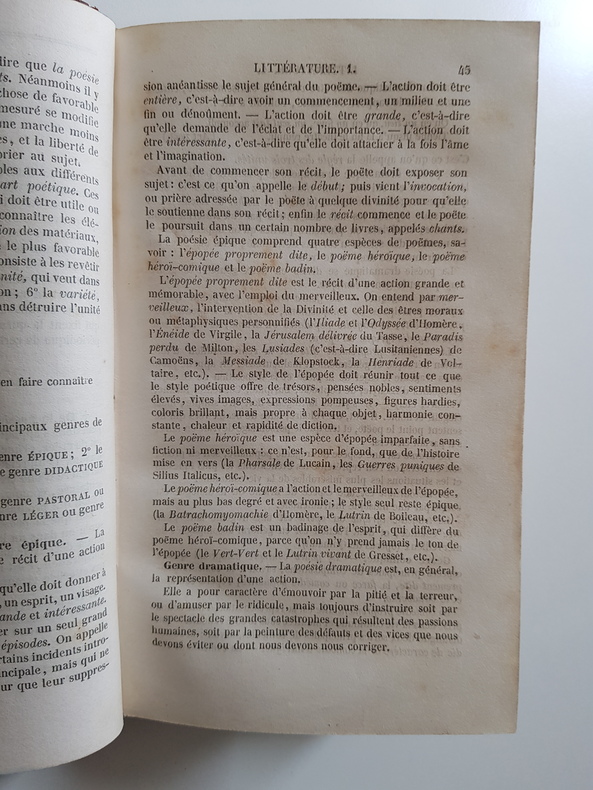 Titre : Nouveau Manuel complet et méthodique des aspirants au baccalauréat ès lettres. D’après le nouveau programme de 1849 Auteur : Lefranc, Émile Éditeur : Imprimerie et Librairie classiques de Jules Delalain, imprimeur de l’Université Lieu d’édition : Paris Année : 1856 Édition : Vingt-quatrième édition, avec six cartes et deux cents figures intercalées dans le texte Reliure : Demi-basane brune d’époque, dos lisse orné de filets dorés, titre doré « Aspirants au Baccalauréat », plats marbrés Langue : Français État du livre : Bon état d’usage. Dos frotté avec épidermures, coiffes usées (petits manques), coins et coupes émoussés. Charnières internes légèrement fendillées mais reliure solide. Intérieur propre avec rousseurs et brunissures éparses, papier jauni. Ancien petit cachet à la page de titre. Sujet(s) : Pédagogie ; Examens ; Baccalauréat ès lettres ; Littérature et humanités au XIXe siècle Notes : Mention de la collaboration de plusieurs membres de l’Université. Ouvrage annoncé illustré de cartes et nombreuses figures dans le texte (selon la page de titre).