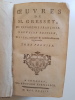 Lettres de M.Rousseau à M. de Lasseré & au R.P. Brumoy - ver-vert poëme à Madame l'Abesse de *** - ka critique de ver vert comédie en un acte - adieux aux jésuites - le lutrin vivant - la chartreuse - les ombres - épitre à ma muse - épitre à M.Orry - vers sur la tragédie d'Alzire - ode au roi sur la guerre - ode sur l'amour de la patrie - eglogue iris - eglogue silene etc - Jean-Baptiste-Louis Gresset, né en 1709 et mort en 1777, est un poète et dramaturge français. Il fut jésuite de 1726 à 1735. Classification Dewey : 840.05-XVIII ème siècle